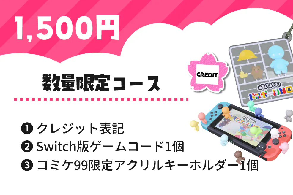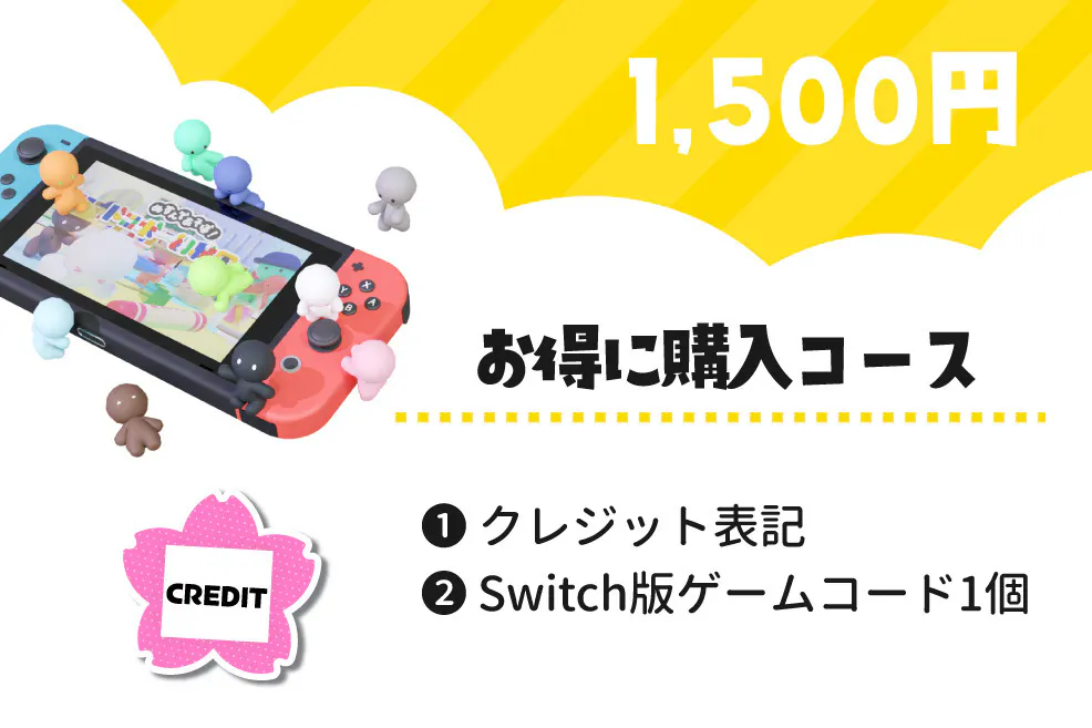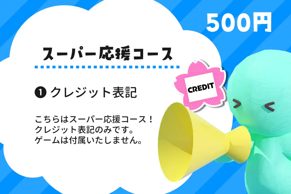 全てのコースで「Switch版開発サポーター」としてゲーム内クレジットさせていただきます。