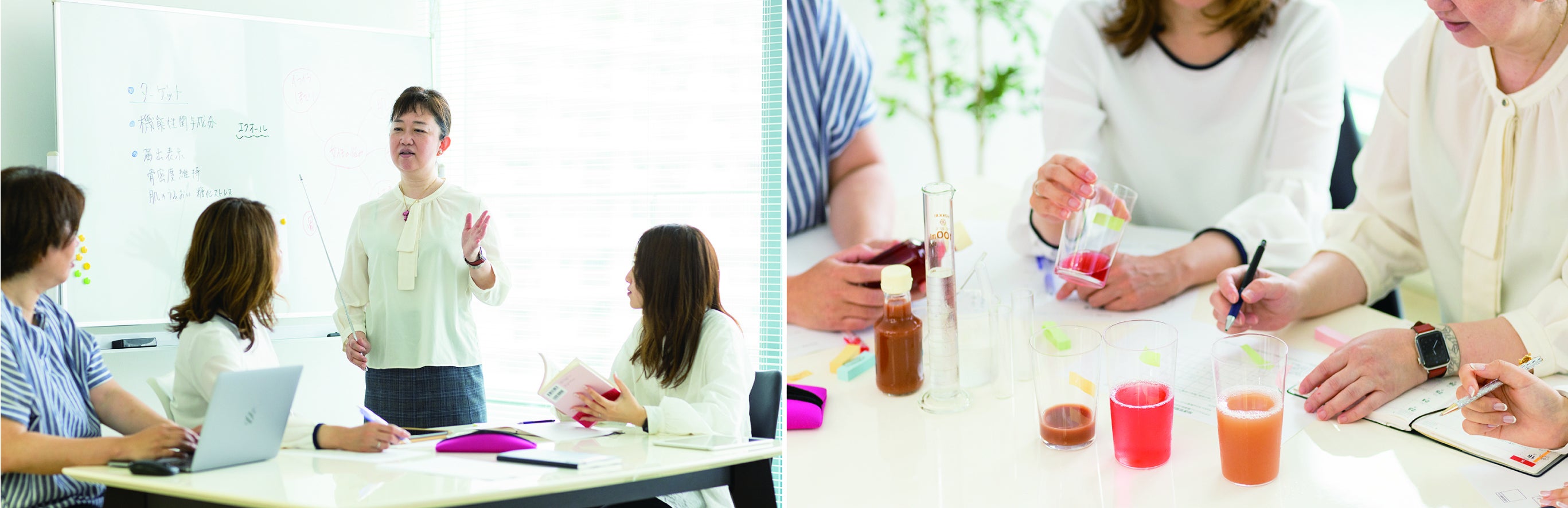 私たちは「ワダカルシウム製薬」という創業111年を迎える老舗の製薬会社の女性開発チームで、薬剤師、開発部、マーケティング部の20代〜50代女性4人がメンバーです。