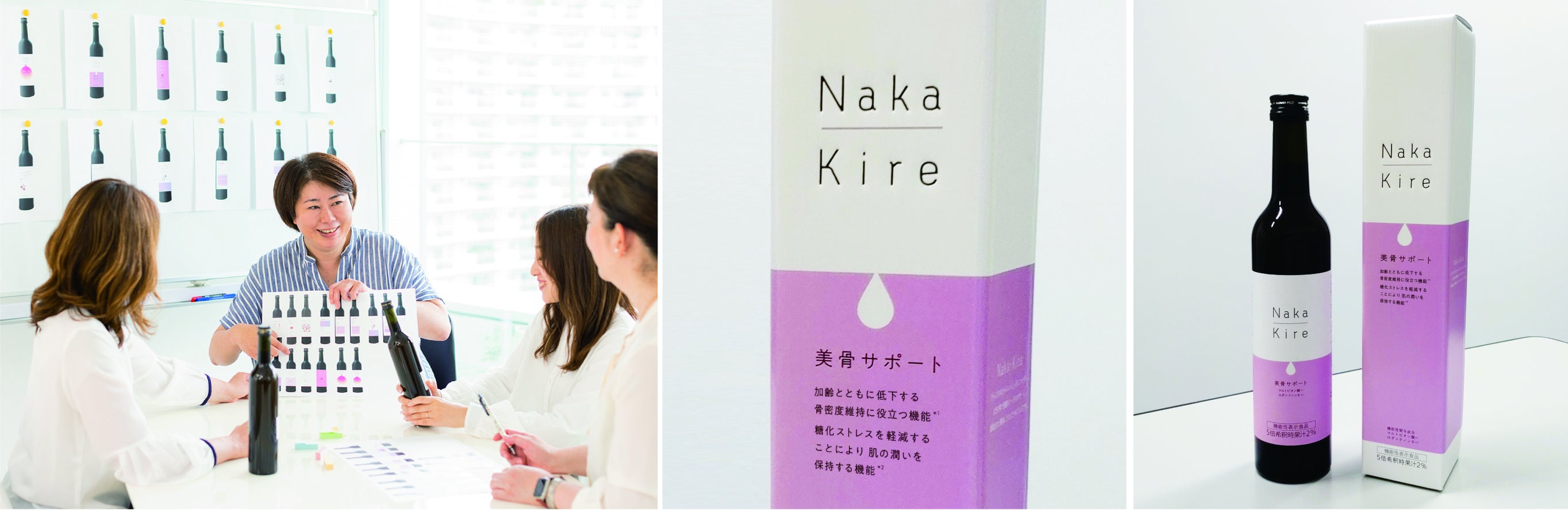 これまでのワダカルシウム製薬では作ったことのない製品なので、商品化にはブランドネーミングの開発も必要でした。社内外からたくさんのネーミング案を集め、議論を重ねるなかで「Naka-Kire」(ナカキレ)というネーミングにみんなの意見が一致。