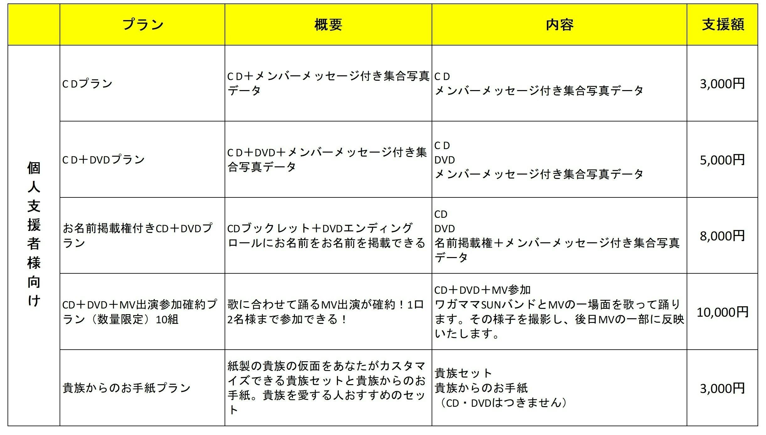 また、ネクストゴールに向け、「MVプロジェクト目標金額達成目前キャンペーン」として実施させていただいていた、CAMPFIREを通じて1万円以上ご支援してくださった方を対象にワガママSUNバンドへの曲のリクエスト権を提供するキャンペーンを、目標金額達成後も引き続き実施させていただきます!詳細は活動報告から御確認下さい。