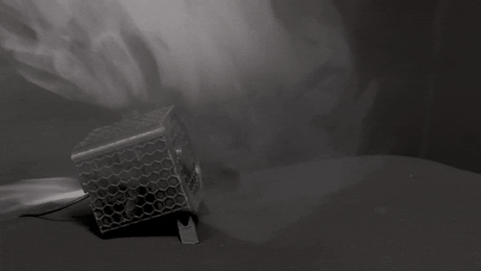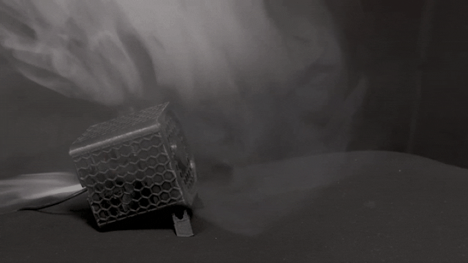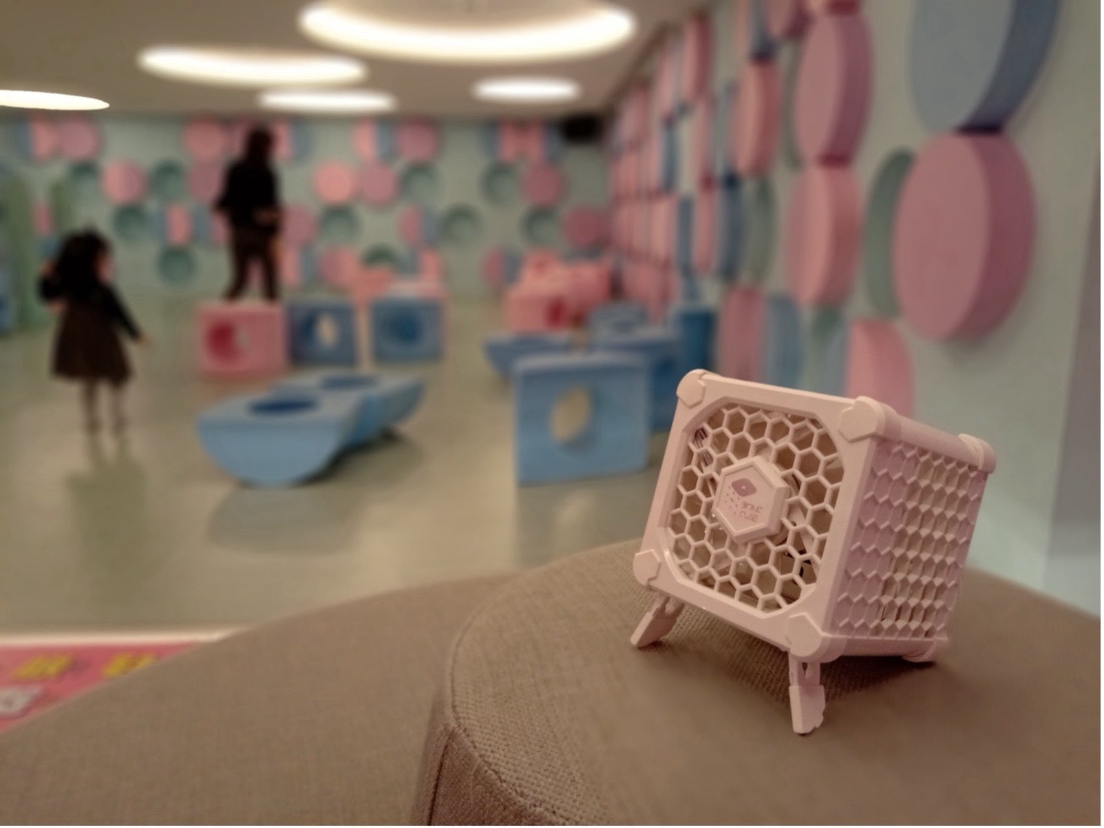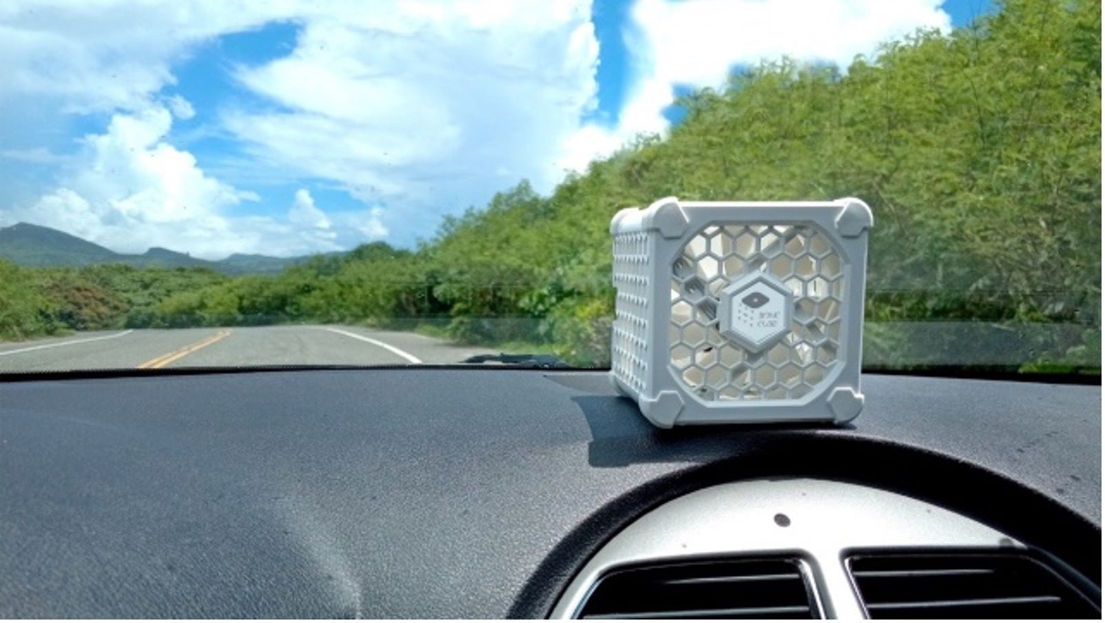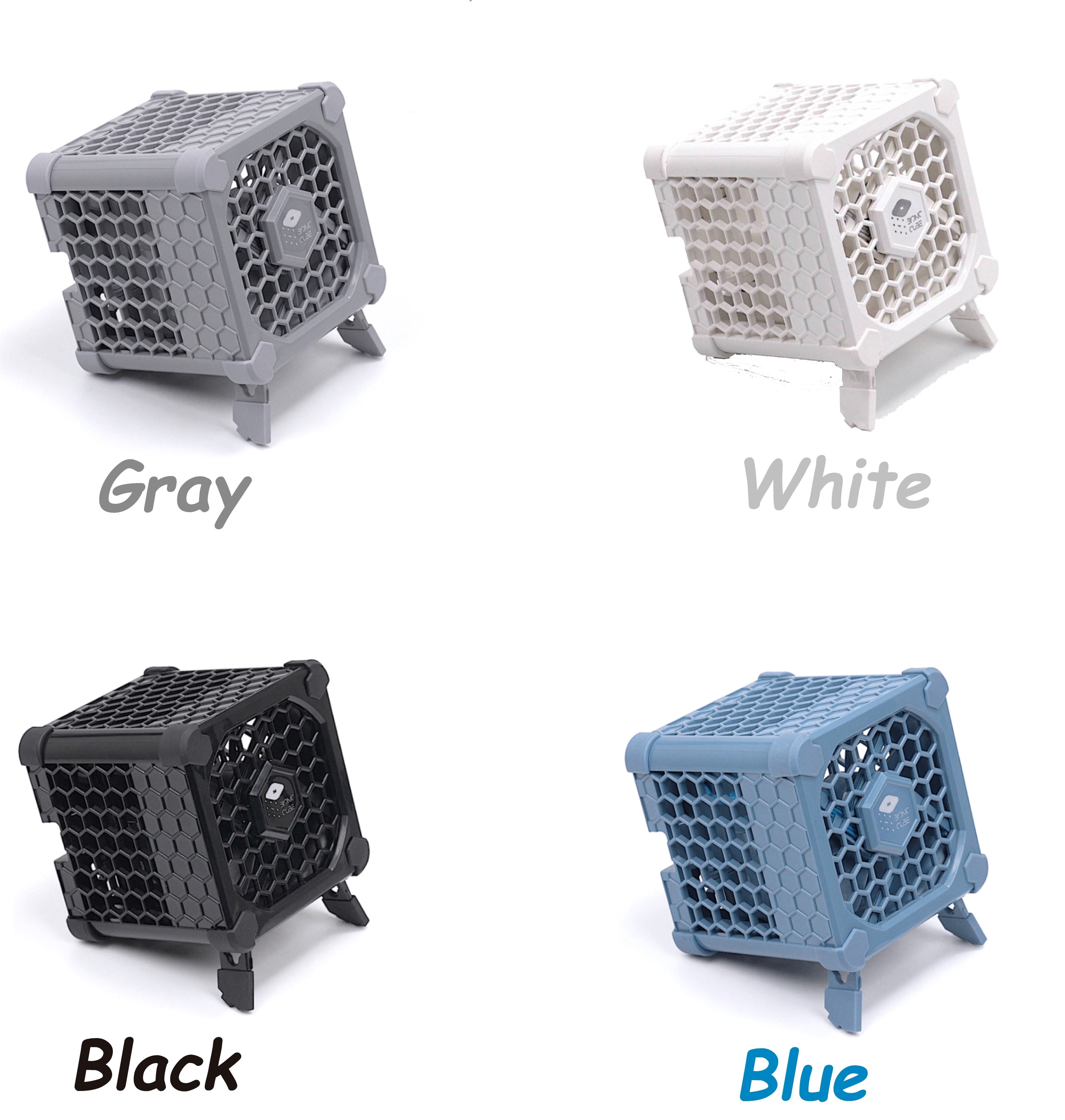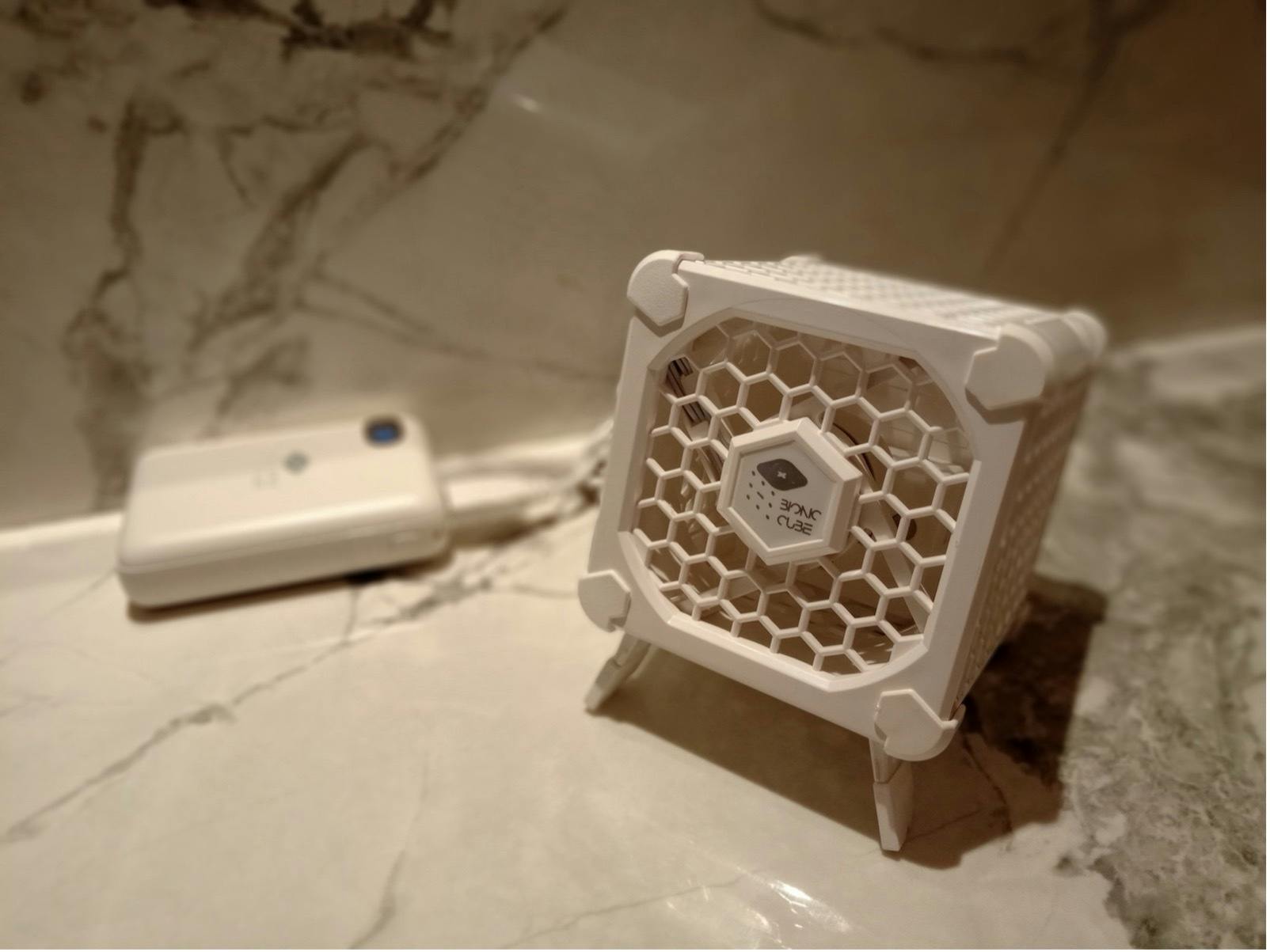 【Bionic Cube】は最大4.5m/sの強力な内蔵のファンでイオンをお部屋の隅々まで届けて空気を浄化します。空気を効率よく取り込んでイオンを放出するため、航空機の構造にも使われるヘキサゴン(六角形)のハニカム構造で上下左右の360度全体に穴を空け、更なる軽量化と強度を保ちながら素早く空気を清浄化する工夫が施されています。その効果は27㎡(約15畳) の部屋で試験し、実証されています。