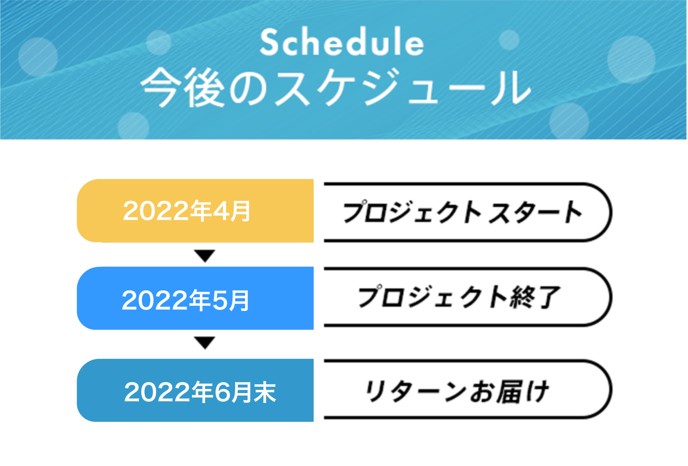 ※本文中に記載させていただいたスケジュールは、あくまでプロジェクト公開時点の予定です。応援購入の性質上、配送遅延のおそれがございます。原則として、配送遅延に伴う応援購入のキャンセルはできませんが、リターン配送予定月から6ヵ月を超えた場合には、希望者に限りキャンセルにて対応させていただきます。