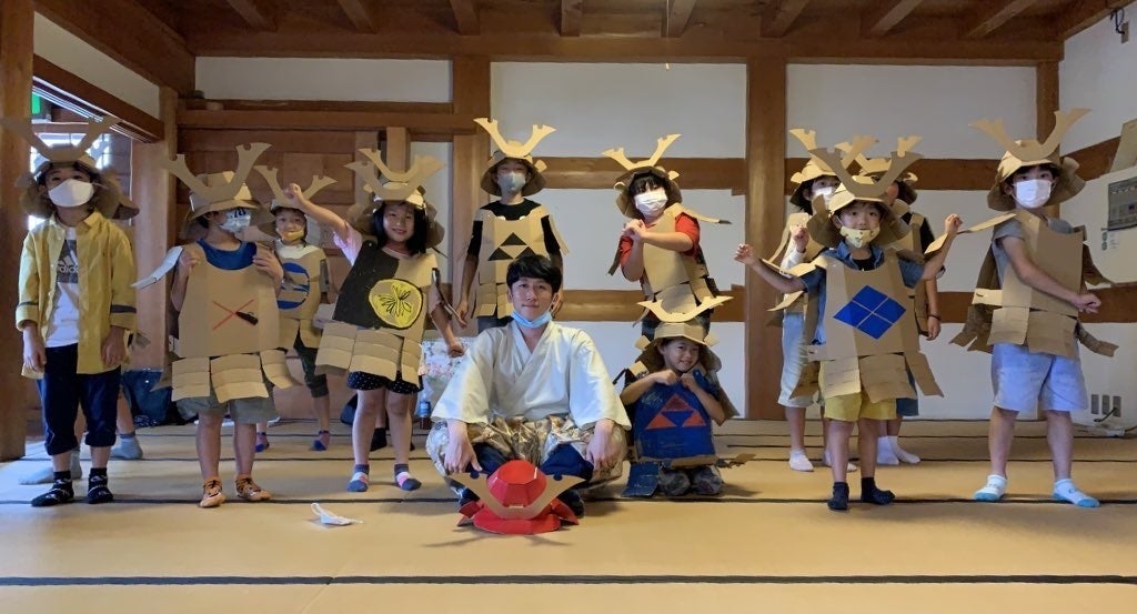 様々な仕事がこの世に存在していること、学校では学ぶことのできない経験や体験の場を提供することのひとつとして、ダンボール甲冑教室を開催しています。