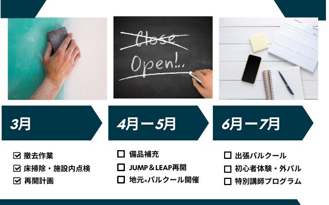 ピンチをチャンスに変えるべく、 現存施設の復旧&パルクールイベント開催を目指します。