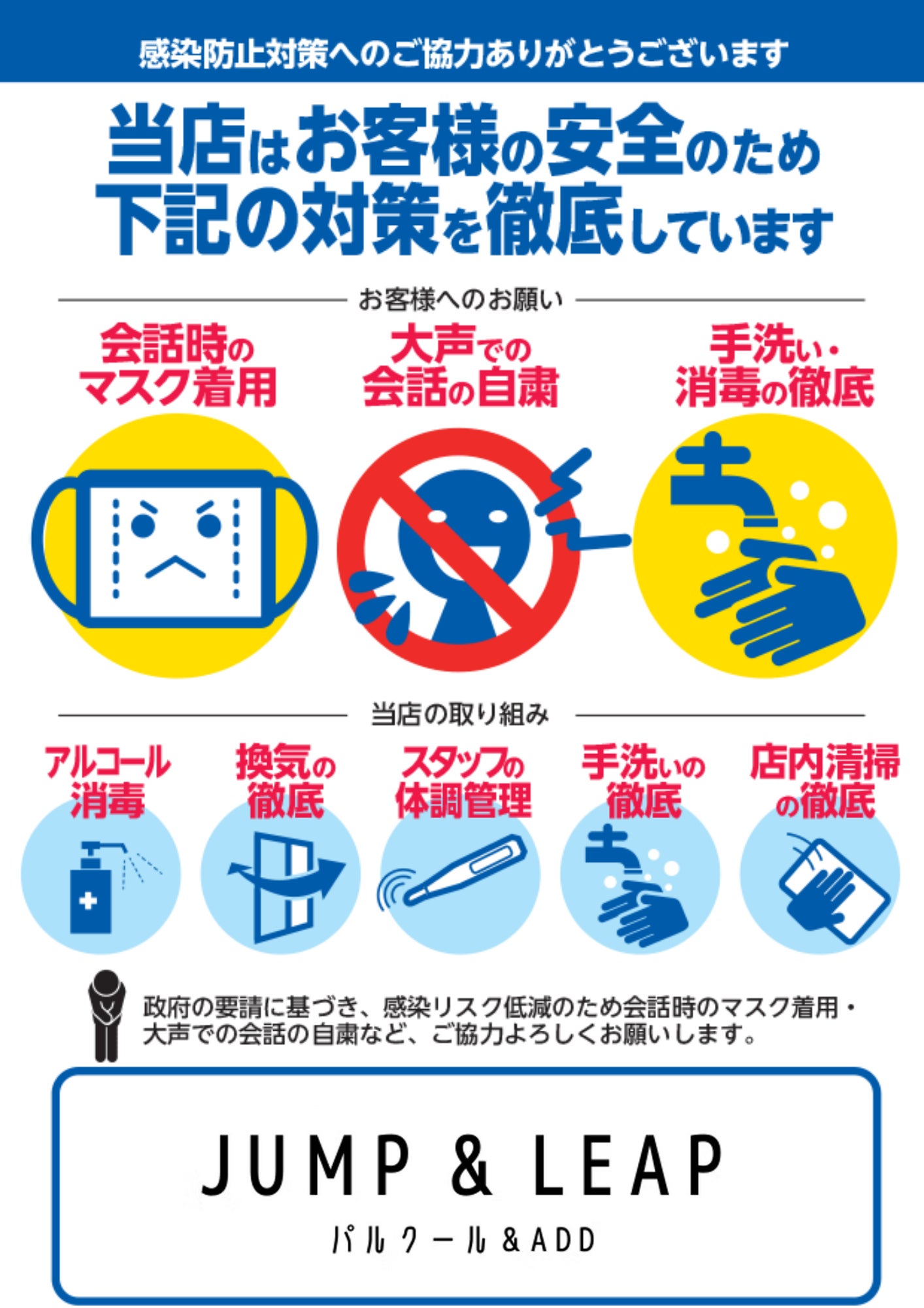 ※当店イベント・練習施設利用におけるコロナ感染対策へのご協力のお願い。