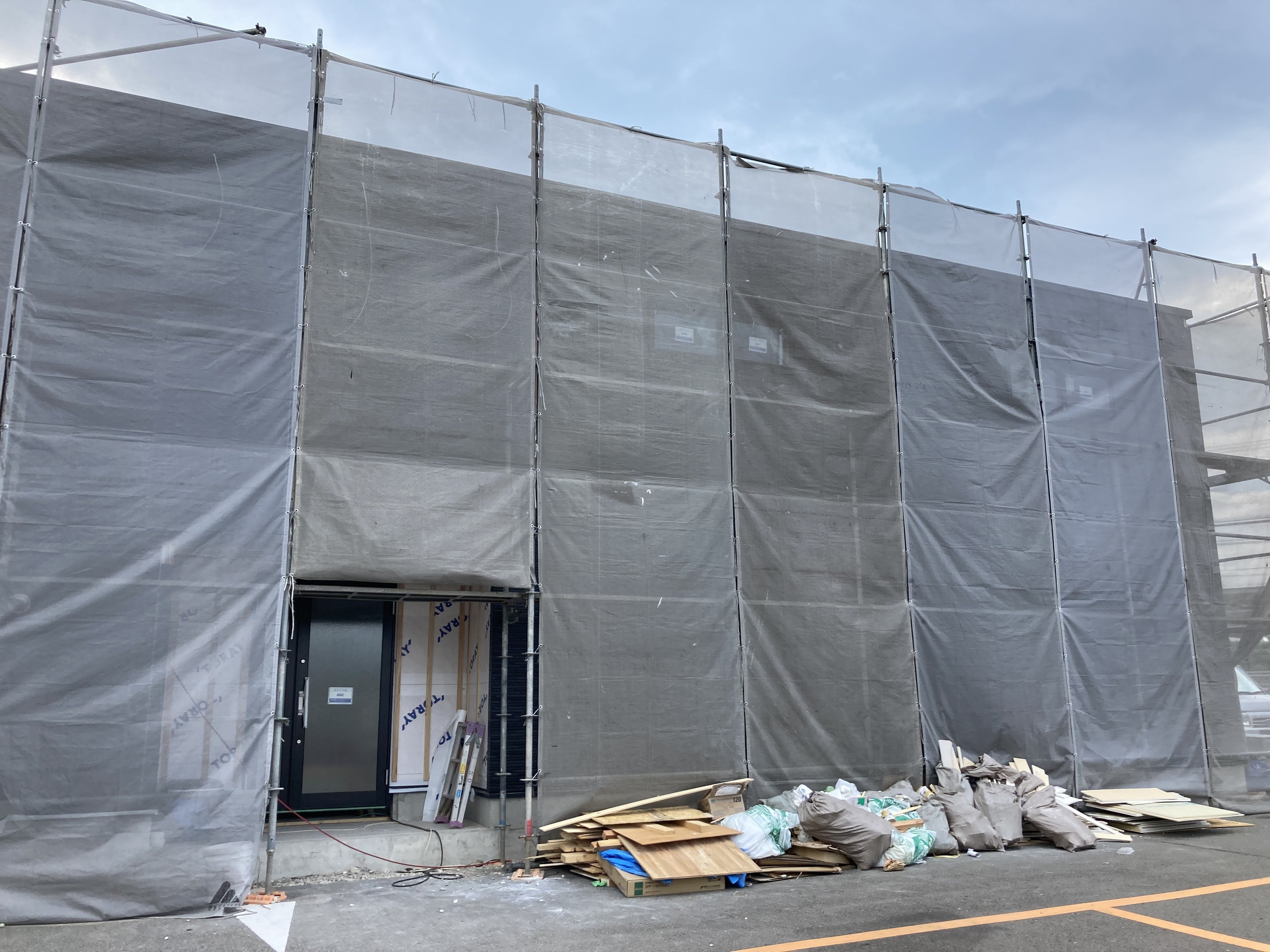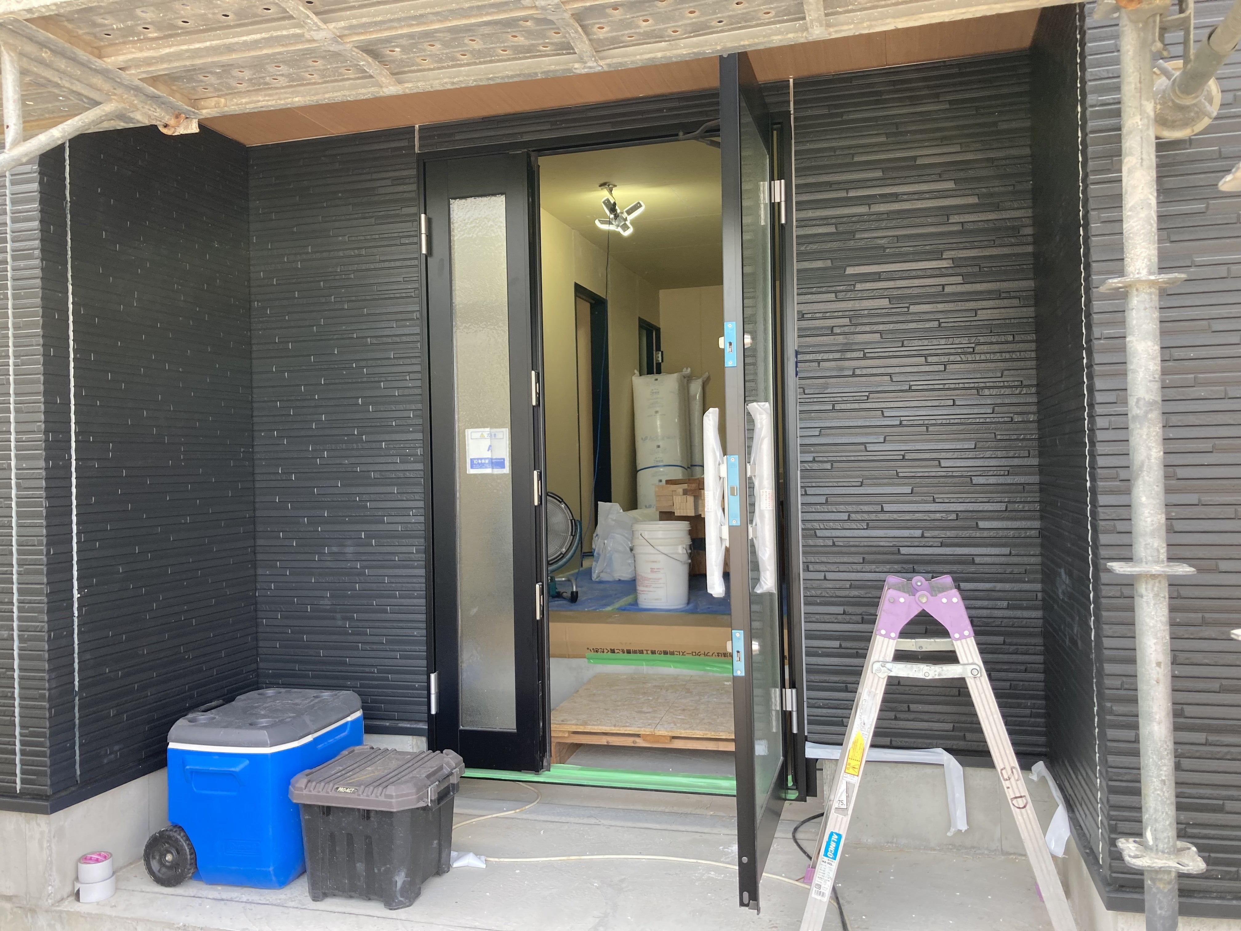 外壁が取り付けられ、現在は内装の施工が進んでおります。