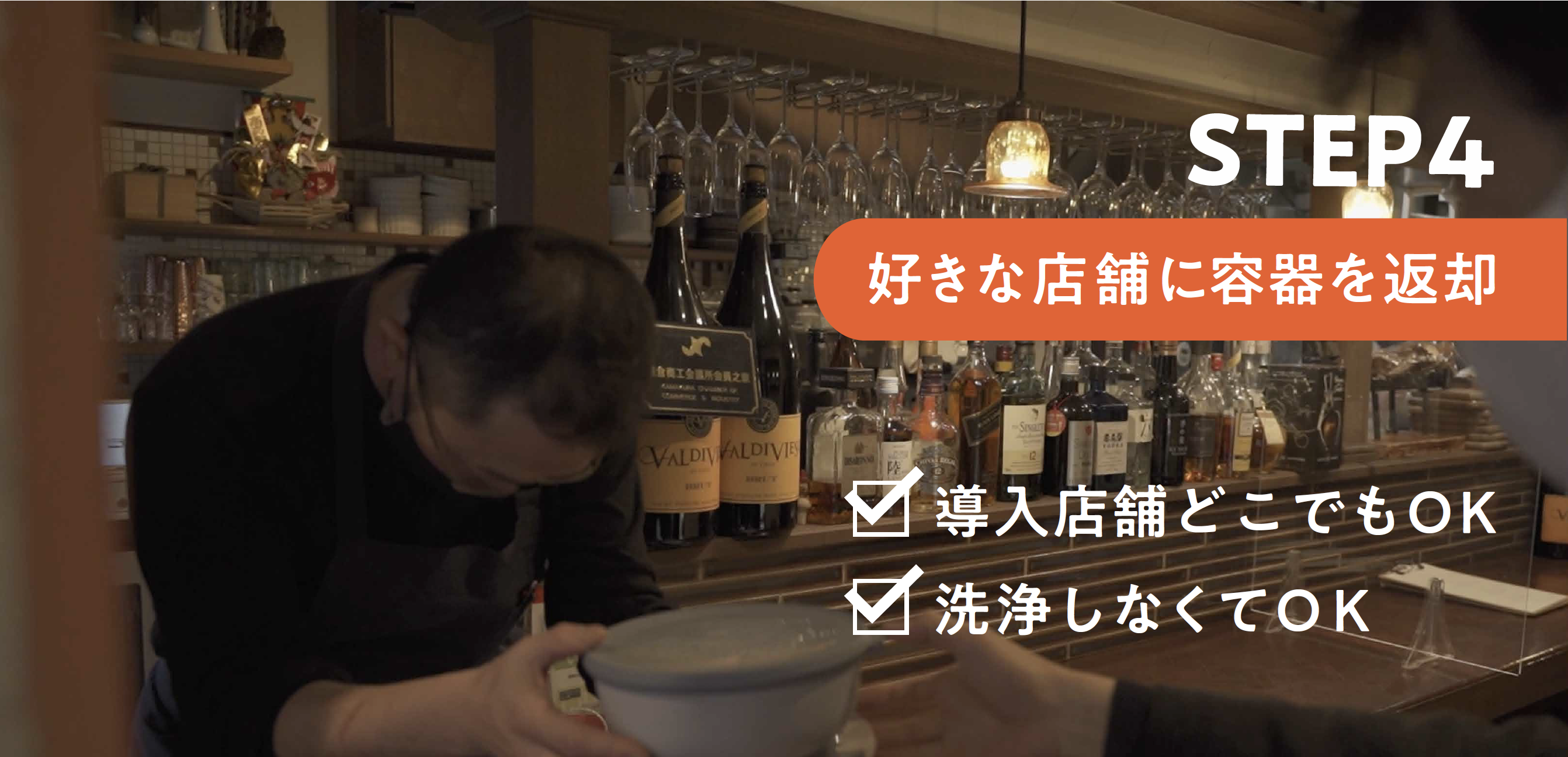 返却された容器は、飲食店でしっかり洗浄して、また別の方に提供します。