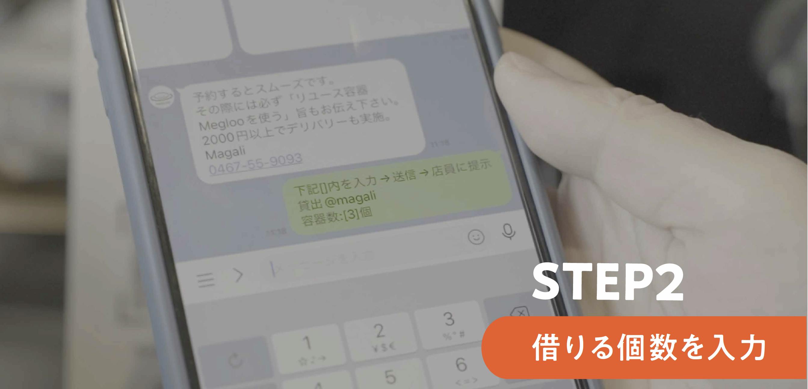 ②LINEで友だち追加し、借りる個数を送信します。LINEで完結し、会員登録等の作業は不要です。