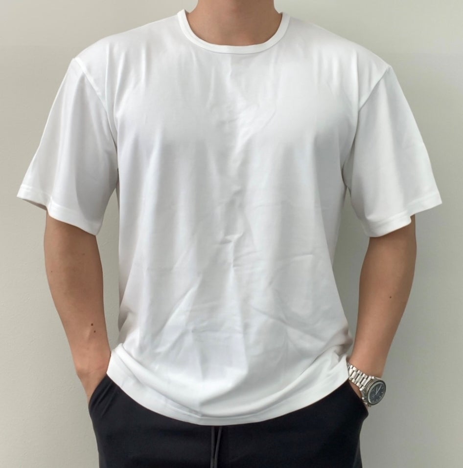 地厚の生地なのに軽い着心地。体の動きを妨げないから、一日中快適。このTシャツは、着用時の安心感・包まれている感じ・温もりが、ほかのTシャツとは全然違うんです。温もりといっても、暑いわけではなく、汗をかいてもサラッと快適なところがフシギな魅力。今回のTシャツは、私には若干肩幅が大きかったけど、メンズライクに着こなせそう。ジャケットやパーカーをサッと羽織れば、ちょっとしたお出かけにも使えそうな上品さも兼ね備えているのは、首の開き具合が小さくて、縫製がしっかりしているからかなぁ〜。気分をシャキッと持ち上げる真っ白な色合いも◎着るとシルクのようなのに、しっかりとして丈夫そうな生地だから、長く着られそうなサステナブルさもいいですね!身長:154センチ、47キロ、40歳代