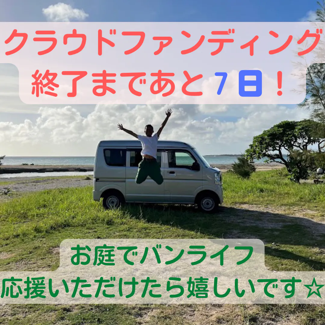 2022/08/03 16:04チャレンジ中のクラウドファンディング、 お庭でバンライフ 今日で残り1週間となりました! 目標達成までは、まだかなり遠い状態ではありますが・・・ 応援頂ける気持ちが本当に嬉しいです! 今回チャレンジしたことで、更に自分自身で気づけたことがいっぱいあります。 その中で、一番強く感じたのは・・・ あるがまま、ありのまま といった感覚です。 僕はこれまでは、努力することで、結果が得られることを人に伝えようとしていました。 5年前に沖縄1周400km走ったのも、そんな想いからでした。頑張る姿を見せることで、伝えられる何かがあると思ったからです。 でも、頑張ることには苦しみも生じます。 今僕が伝えたいのは、 みんな誰もが、あるがまま、ありのままで良いんだよ〜! という苦しみのない世界です。 好きだから、勝手に心も体も動き出しちゃうような世界です。 思考で邪魔されているそれらを取っ払って!誰もがあるがまま、ありのままでいたら・・・ 人同士が争うことなんて、なくなりますからね! バンライフをすることで、そんな想いも発信していきます! 中々厳しい状態ではありますが・・・ 最後までワクワク顔晴っていきます! 引き続き、クラウドファンディングの応援&シェアなど頂けたら嬉しいで〜す☆ もっと見る
