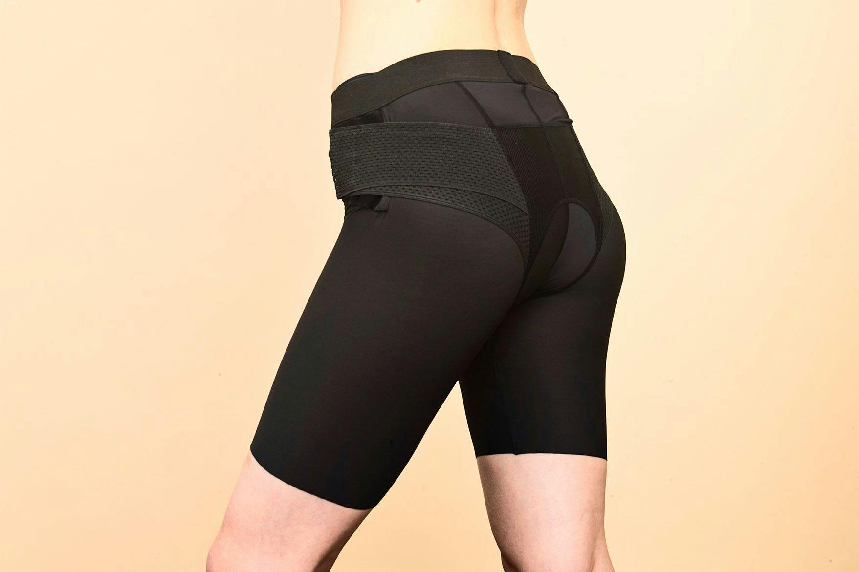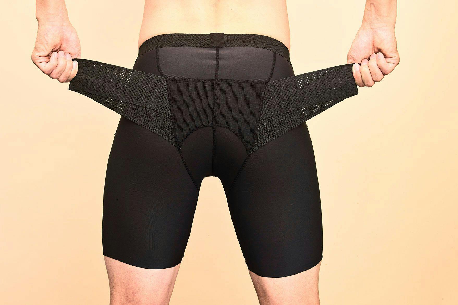 従来の自社品のベルト型サポーターではウェア内でのごわつきや、サポーターのズレが生じるため、ズレにくく、薄型軽量設計の『骨盤ベルト一体型ボトム』を開発しました。