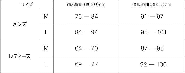 ■メンズ Ⅼサイズ 適用範囲(胴回りcm)84~94、(腰回りcm)95~101