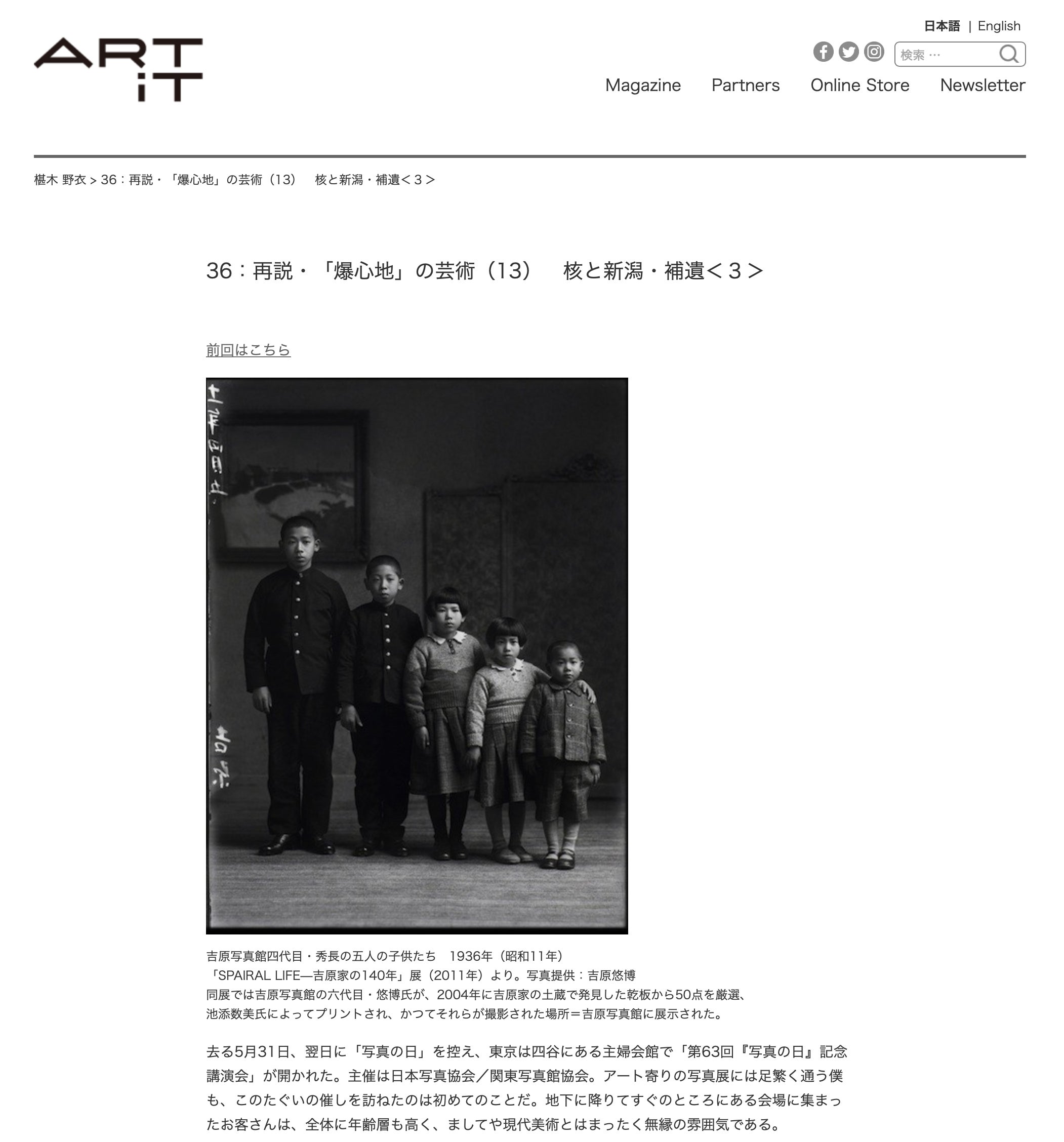 >>椹木批評 Art it /吉原悠博の作品、吉原家の140年、写真の町シバタ等を批評
