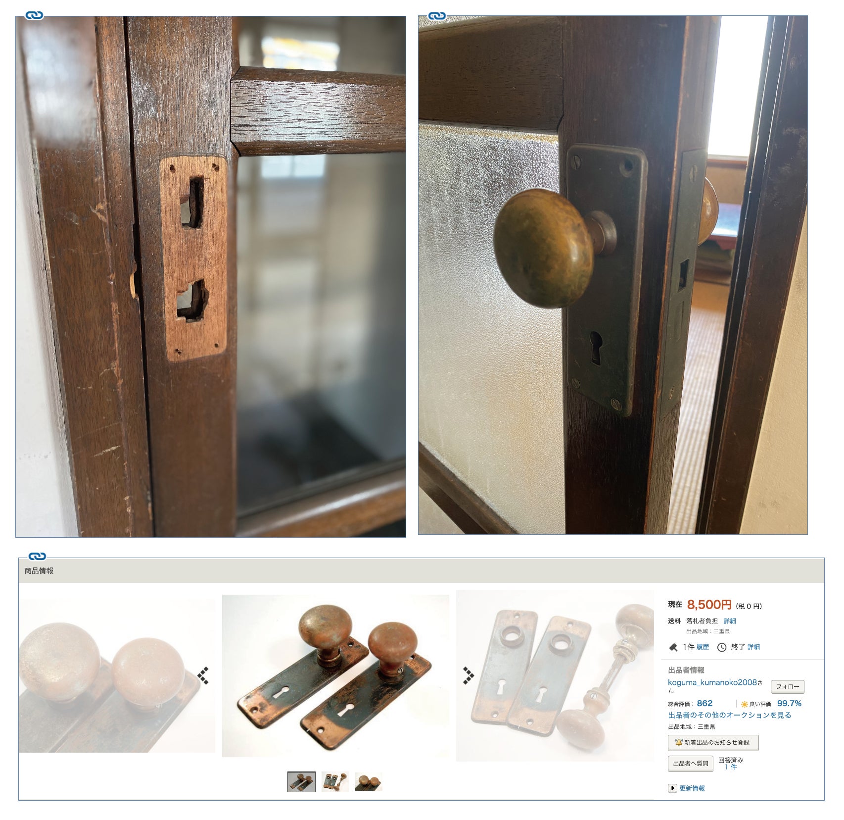 ギャラリーのドアノブの1つが欠落していたのですが、先日ヤフーオークションで、ほぼ