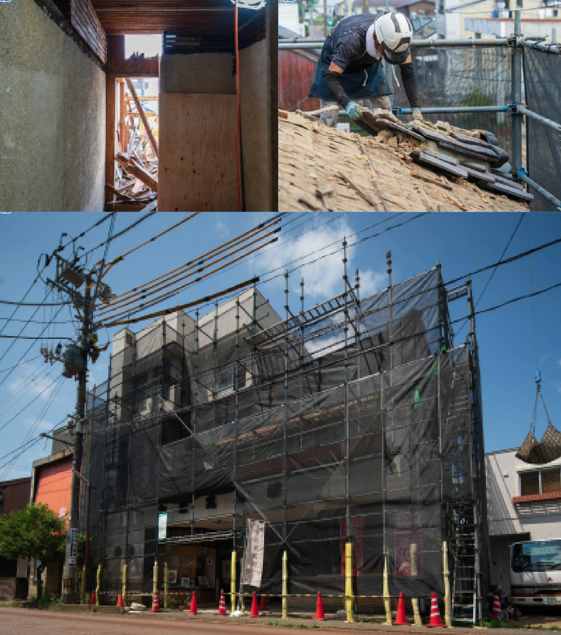 本日、新発田は快晴、雨のため順延になっていた屋根の解体が行われています。