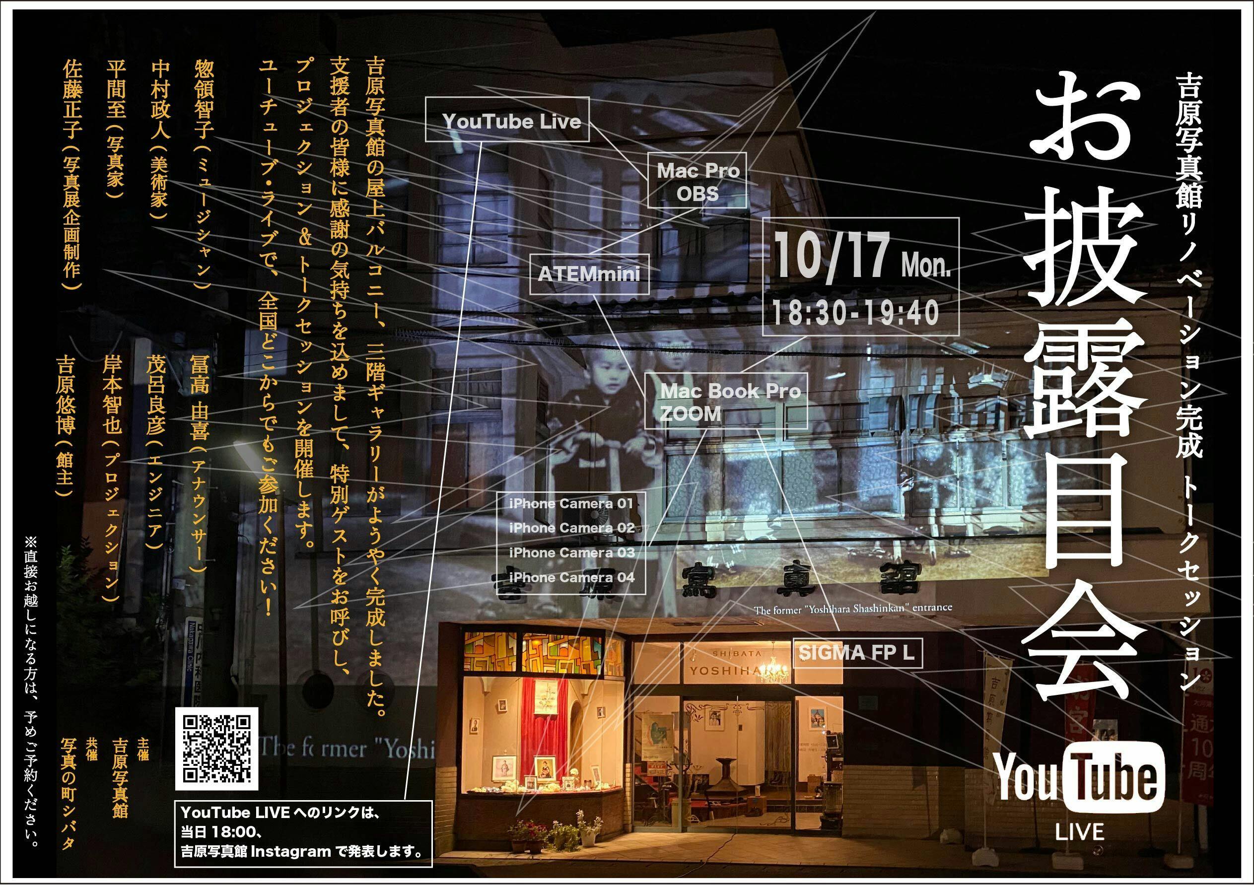 17日の吉原写真館お披露目会YouTube LIVEのお知らせいたします。配信システムがようやく決まりました。ZOOMからYouTube LIVEを通して配信いたします。遠方の方は、当日18時に吉原写真館Instagramにてアドレスを公開いたしますのQRコードからアクセスしてください。新発田警察署、新発田市維持建築課に許可頂き、写真館前の道路も封鎖することにしました。安全を確保しますので、お近くの方は、是非お越しください。