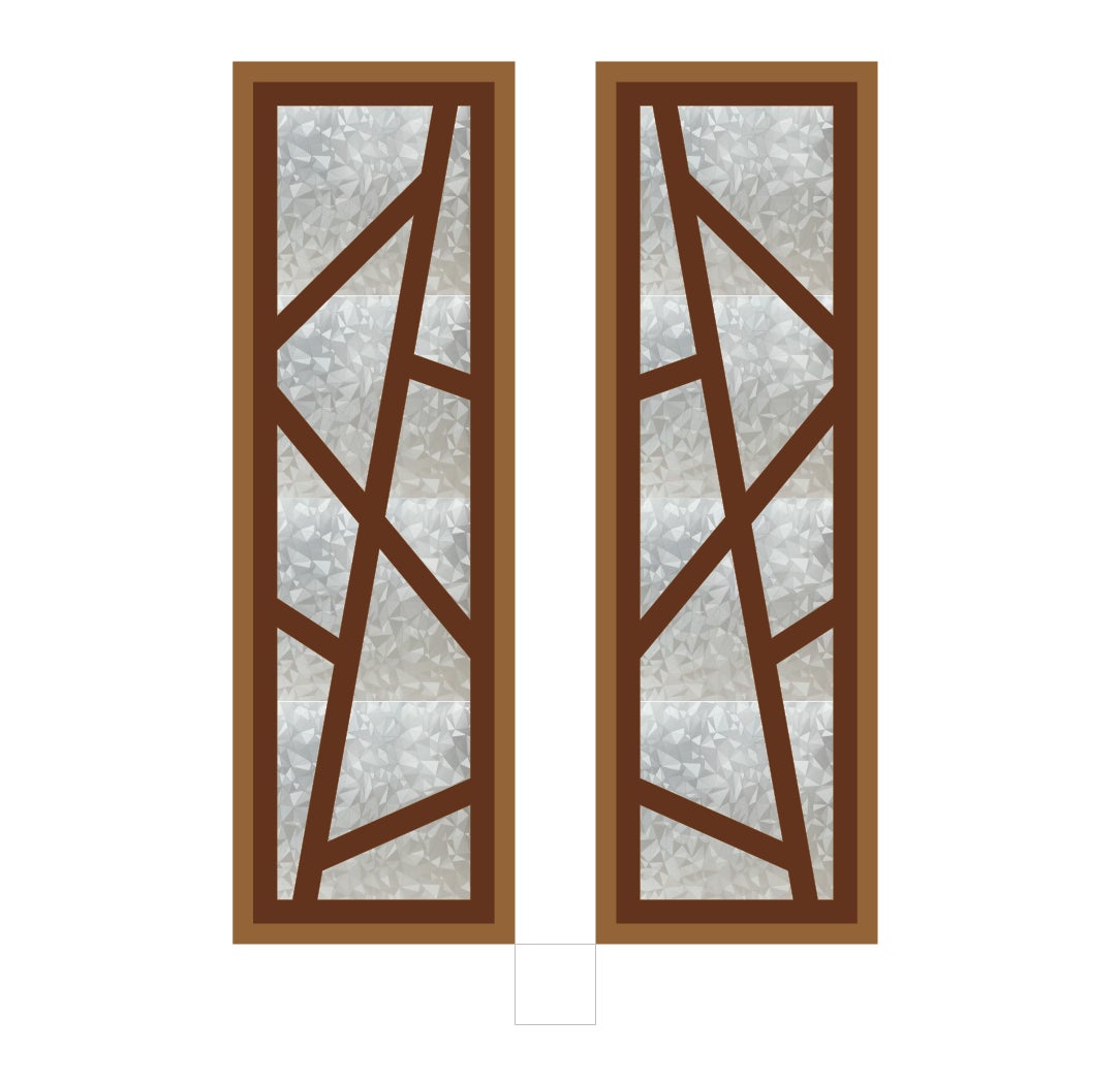 スティア踊場の窓、気に入ったのがないので、自分で製作しています。バウハウスの絵画に、ヒントを得ています。