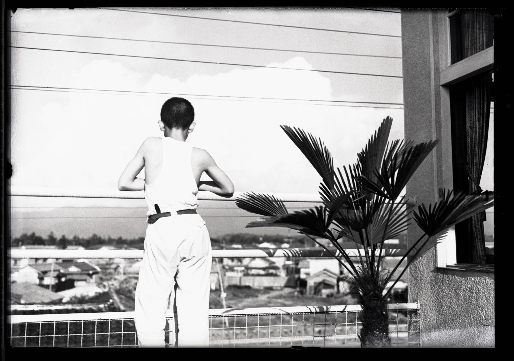 屋上から風景を見る父・俊雄(10)の写真です。1936年、祖父・秀長の撮影。次回、屋上から見える光景の写真をシェアいたします。