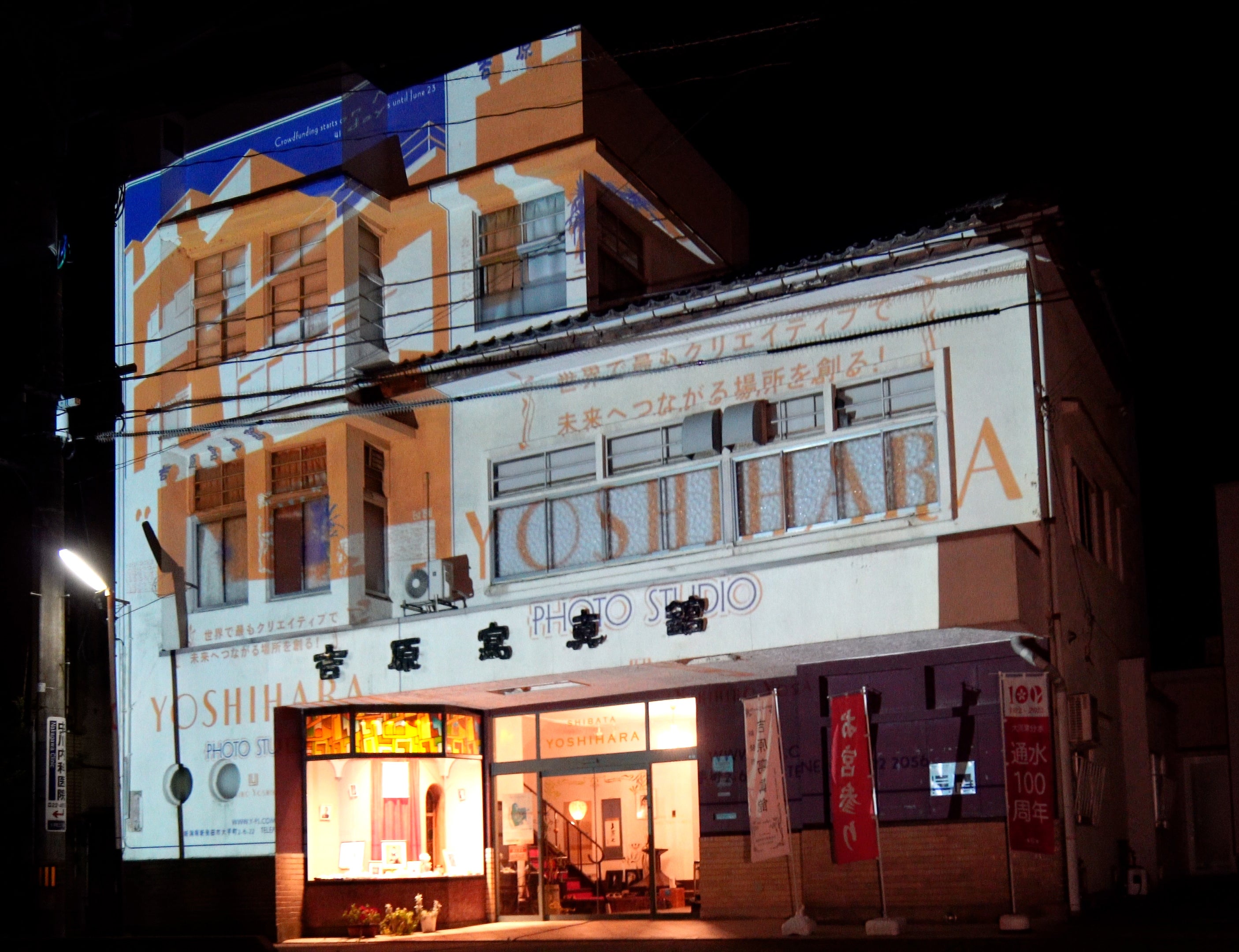 先日、アーティストの岸本智也さんにより、吉原写真館をプロジェクションいたしました。屋上バルコニー完成は8月予定ですが、10月写真の町シバタ2022の企画展の一つとして、写真館を使ったイベントを計画中です。このプロジェクションテストは、そのためです。数日後に、もう少し内容をお知らせいたします。