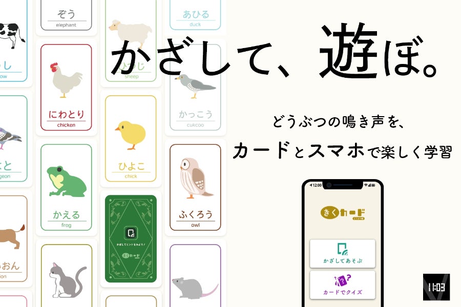 聞くカードはカードに情報を書き込んだチップを埋め込み、それを専用アプリで読み取ることで、カードごとの音や、そのほか多くの情報を見てカードを体験することができる次世代カード型知育玩具です。