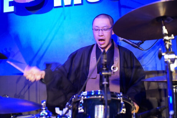 大学時代に青春の熱を注ぎ込んだ音楽も大切にしており、坊主バンドのドラマー朝野白粥としても活動中です。