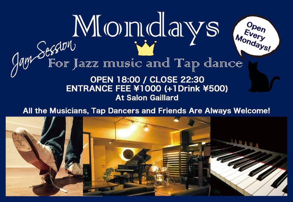 昔から舞台の制作のお手伝いをしていたご縁でタップダンサーの仲間が多いわたしが、これまたご縁があって曙橋にある素敵なサロンスペースをお借りして、毎週月曜日の夜にタップダンスとジャズミュージックのための"Mondays"というジャムセッションを開いておりました。(現在はコロナ禍の影響もあり長期のお休み中ですが、またいつかみんなとMondaysがやりたいなと思います。)