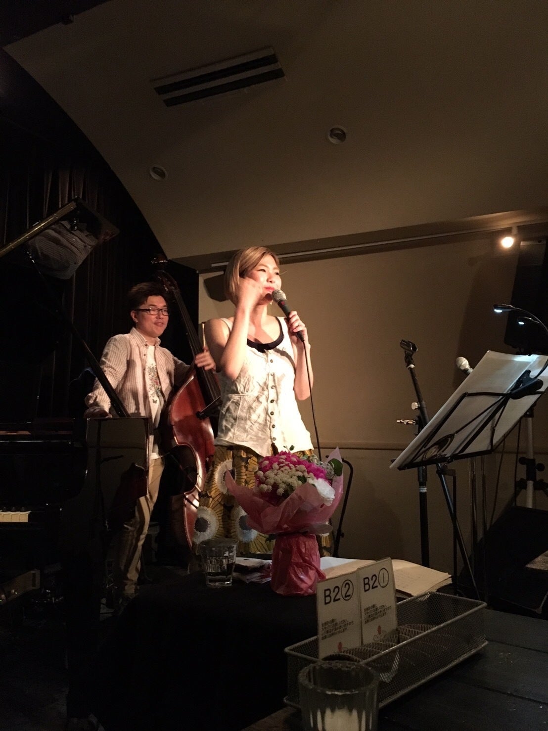 みなさんこんばんは!今日は今回のアルバムのレコーディングに参加してくださる素敵なバンドメンバーの紹介をさせてください!本日ご紹介するのはベーシストの熊谷望さんです!熊谷さんとは2016年に、ピアニストの工藤拓人さんのご紹介で出会いました。工藤さんと熊谷さんのライブにゲストボーカルとして参加させていただいたのがきっかけです。その後も何度か同じ場所でトリオのライブをさせていただき、わたしのオリジナル曲もたくさん演奏してくださいました。(その時はコントラバス(ウッドベース)での演奏がほとんどだったので、しっとり、がっしり、うっとりとしていましたが、後にブリブリのエレキベースを演奏されている熊谷さんをライブで観た時はヒューー!カッコイイ!っと声に出してしまうほど興奮しました。)このアルバムを作ろうと思った時にはまだ選曲は定まっていなかったのですが、絶対にアルコ(弓弾き)のベースがフィーチャーされる曲を入れたい!と思っていたのです。その時、もちろん、既に心の中でベーシストは熊谷さんに頼みたいと決めておりました。熊谷さんはコントラバスも、エレキベースも、全てにおいて素晴らしいプレイヤーなのですが、なぜ、わたしがアルコベースを熊谷さんに弾いてもらいたいと思ったかと言うと、ご一緒したライブの中で、わたしのオリジナル曲"Nothing was written"という曲を、ここはアルコ(弓弾き)にしようか、とアレンジを入れてくださったことで、この曲が、本当の意味で完成された、というか、(今まで完成してなかったわけではないですし、他のプレイヤーの方々による素晴らしいアレンジも大好きなこの曲なのですが、)アァ!!こんな曲になったら良いなと思っていたんだ!!わたしは!!この音色が聴きたかったんだ!!すごい!!となったわけです。もうずっと、その音に包まれて歌っていたかったです。それくらい、印象深い、優しい優しい音色でした。なので、このアルバムには絶対に熊谷さんのアルコベースを入れたい!と決めていたのでした。選曲を進めていき、編曲をお願いした野田晴彦さんと打ち合わせをしたときも、アルコベースの曲をどうしても入れたい、とお話ししました。(なんならアルコベースとふたりきりでも良い、くらいな勢いでした。さすがにふたりきりではなくなりましたが!)選曲は紆余曲折あり当初予定していた楽曲ではないものになったのですが、野田さんのおかげで素晴らしいアレンジがほどこされたひとつの楽曲があります。これからレコーディングで熊谷さんのアルコベースが入ることが今から本当に楽しみです!そして今回は、コントラバス以外にもエレキベース、それからフレットレスベース!も演奏してくださいます。様々な音色の熊谷さんのベースをたっぷり味わっていただけるラインナップになりますので、みなさんもどうぞお楽しみに!!熊谷さんは北海道のご出身で、お話しする言葉に親近感があります。優しい笑顔はライブ中の癒しにもなります。わたしは里帰り出産のため実家のある札幌へ帰っていた時期があったのですが、その時たまたま札幌で熊谷さんのライブがあったので、大きいお腹で遊びに行ったこともあります。これが、初めて熊谷さんがエレキベースを弾いているのを観た時で、お腹の中の娘もドンドコドンドコめちゃくちゃノっていたのを覚えています。そして産後、初めてステージに誘ってくれたのも熊谷さんでした。出産して5ヶ月、もうしばらくステージで歌うことははいだろうなあとセンチメンタルな気持ちになっていた時、札幌でのライブに誘ってくださったのでした。あの時、そんなセンチメンタルなわたしを気軽に音楽の場に連れ戻してくれたこと、とても感謝しています。そして今もわたしの音楽の道を応援してくださる熊谷さんに、励まされています。熊谷さん、本当にいつもありがとうございます!サンキュー(産休)明けライブ、熊谷さんが投稿してくれたビデオもありますので是非その時の演奏も聴いていただけたら嬉しいです!コロナ禍でも精力的に配信や遠隔ライブなどをされていて(わたしはなかなか遠隔ライブの環境を整えられずにいるのですが…いつかご一緒してみたい。)いつもいつまでも音楽を止めない、本当に素晴らしい音楽家だと心から敬愛しています。たくさんのライブ、配信などがありますので、こちらから熊谷さんのインフォメーションをご覧いただければ嬉しいです。SoundcloudやYouTubeでも熊谷さんの作品を聴くことができます。・Facebook Page ・オフィシャルサイトと、締めくくりそうになったのですが、もうひとつだけ。以前わたしがライブの曲中に、確か…寅さんのテーマ曲を歌ったときのことです。間奏のところでメンバー紹介を挟んだのです。(私、生まれも育ちも葛飾柴又~のところ)うろ覚えなのですが、それぞれメンバーの生まれと育ちと、好きなものみたいなことを紹介したのです。その時に、熊谷さんは”花火”が好きだと教えてくれました。