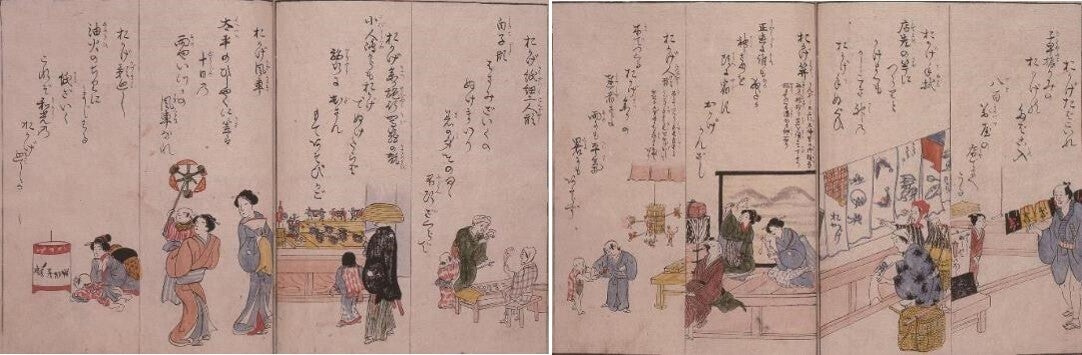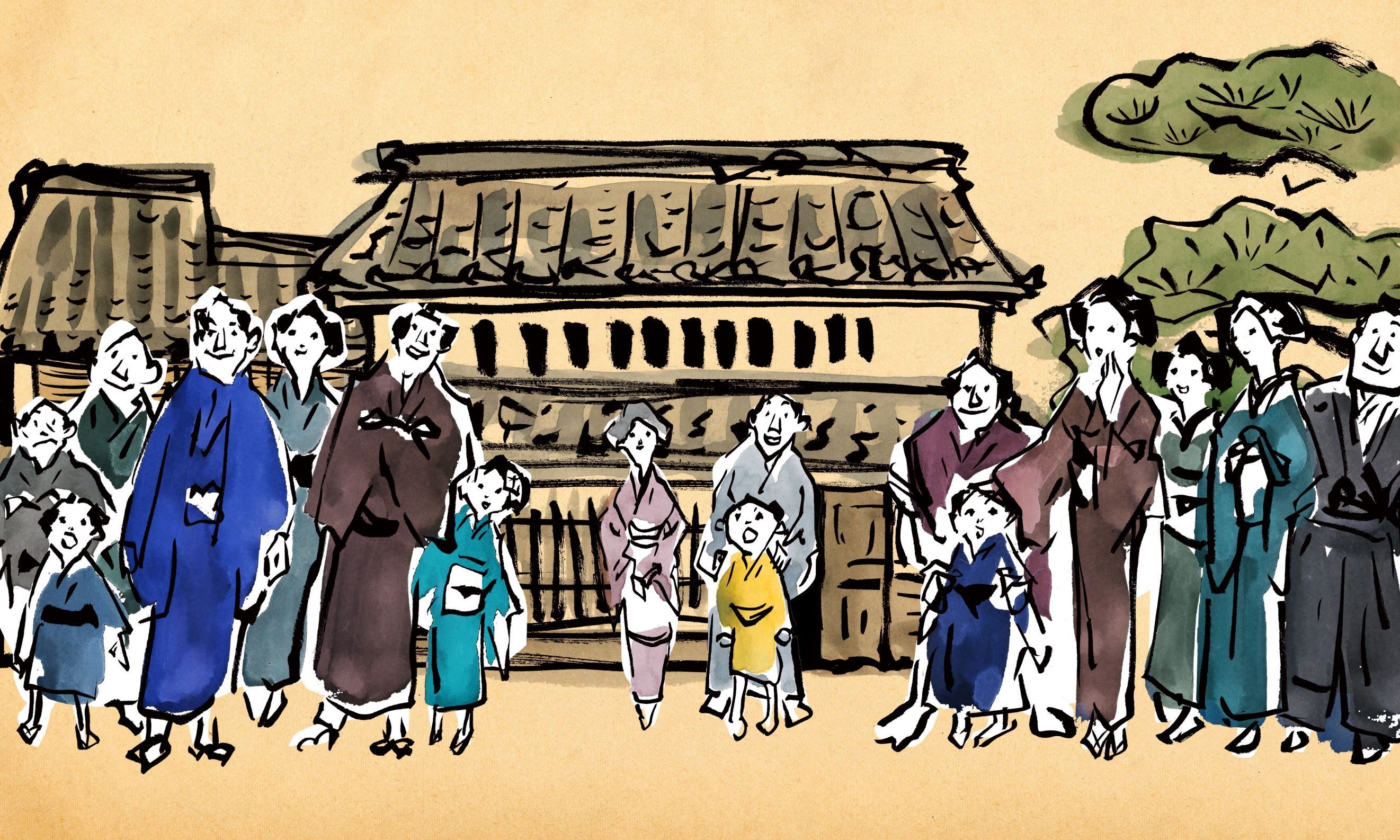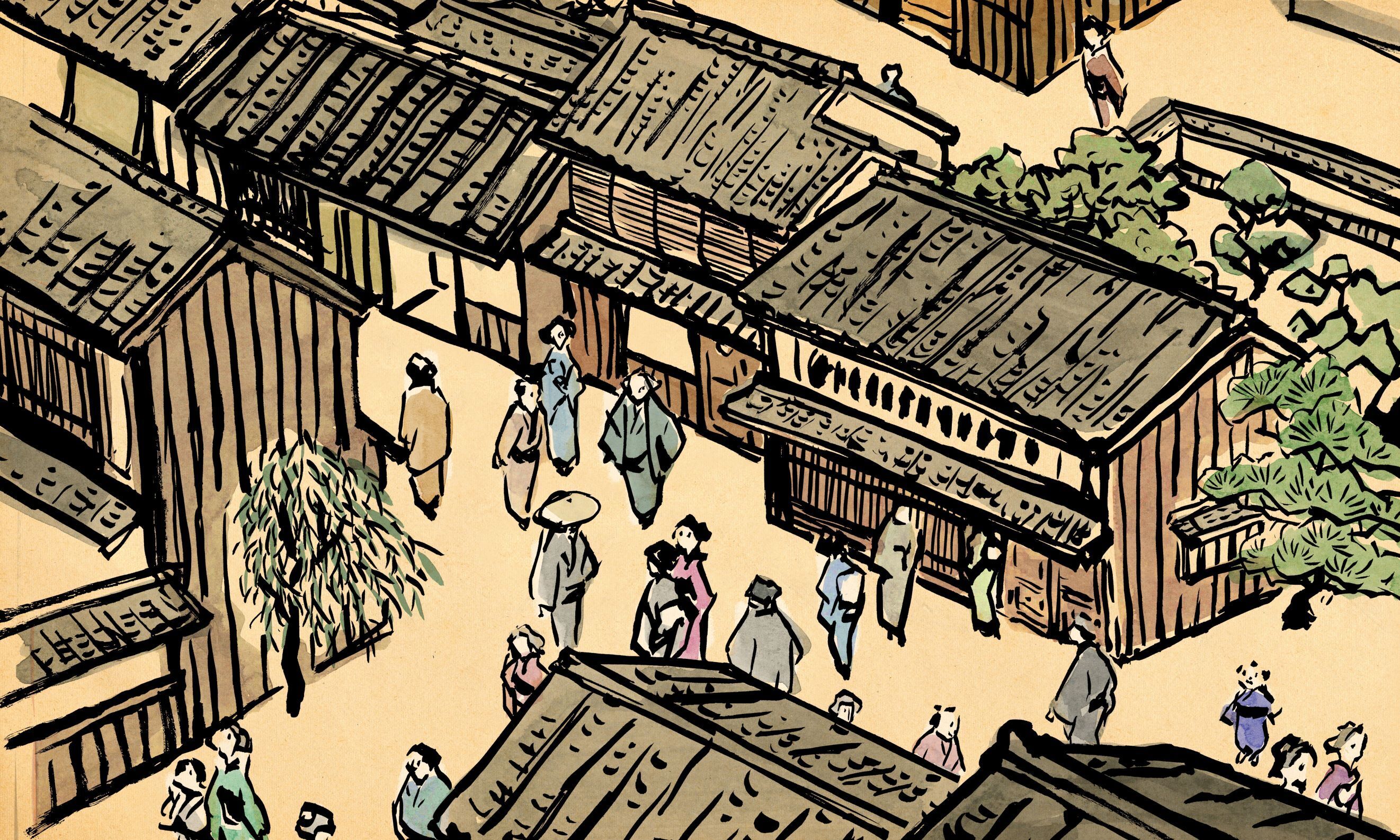 イラストレーター・ナカガワ暢さんによる江戸の街並みと町人たち