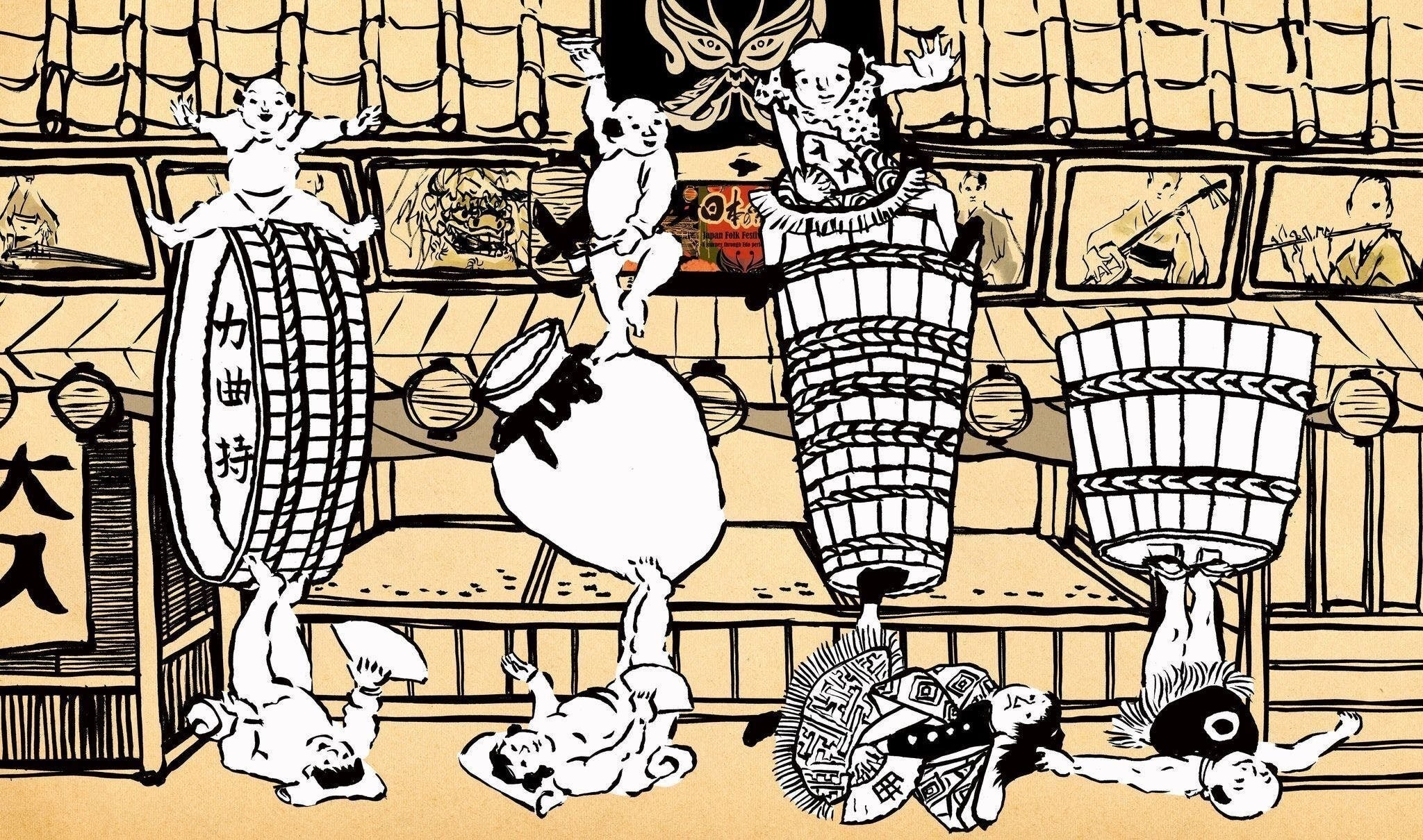 リアルな伝統芸能のパフォーマンスと映像の融合で最も腐心したのが、いかに江戸時代の町の雰囲気を醸し出すかということでした。日本の伝統文化にも通じているナカガワ暢さんが描くイラストがどんな映像に仕上がっているか、そこで表現される伝統芸能のパフォーマンスとともにお楽しみください。