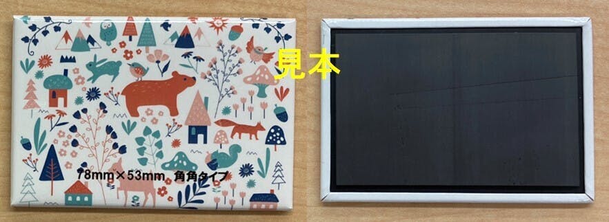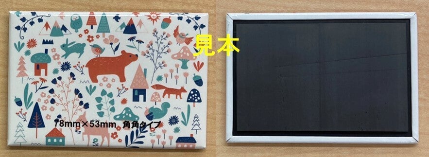 こちらは公演の映像で使用するナカガワ暢さんオリジナルイラスト画を3点缶マグネットにしました。サイズは各53x78mm