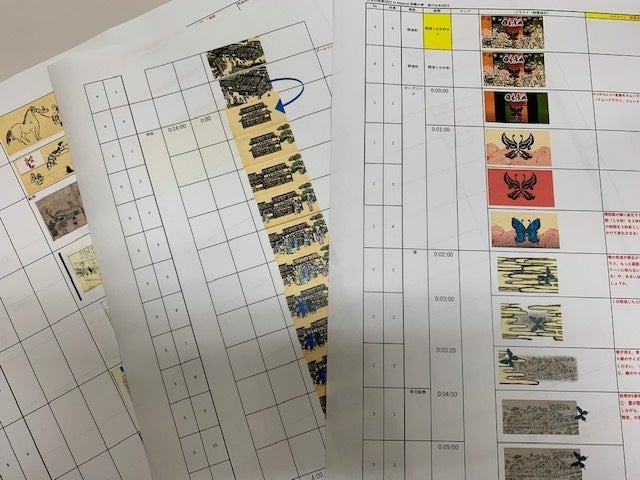 進行台本:一枚一枚のイラストに映像のイメージが伝わるように指示出しをして映像を制作します