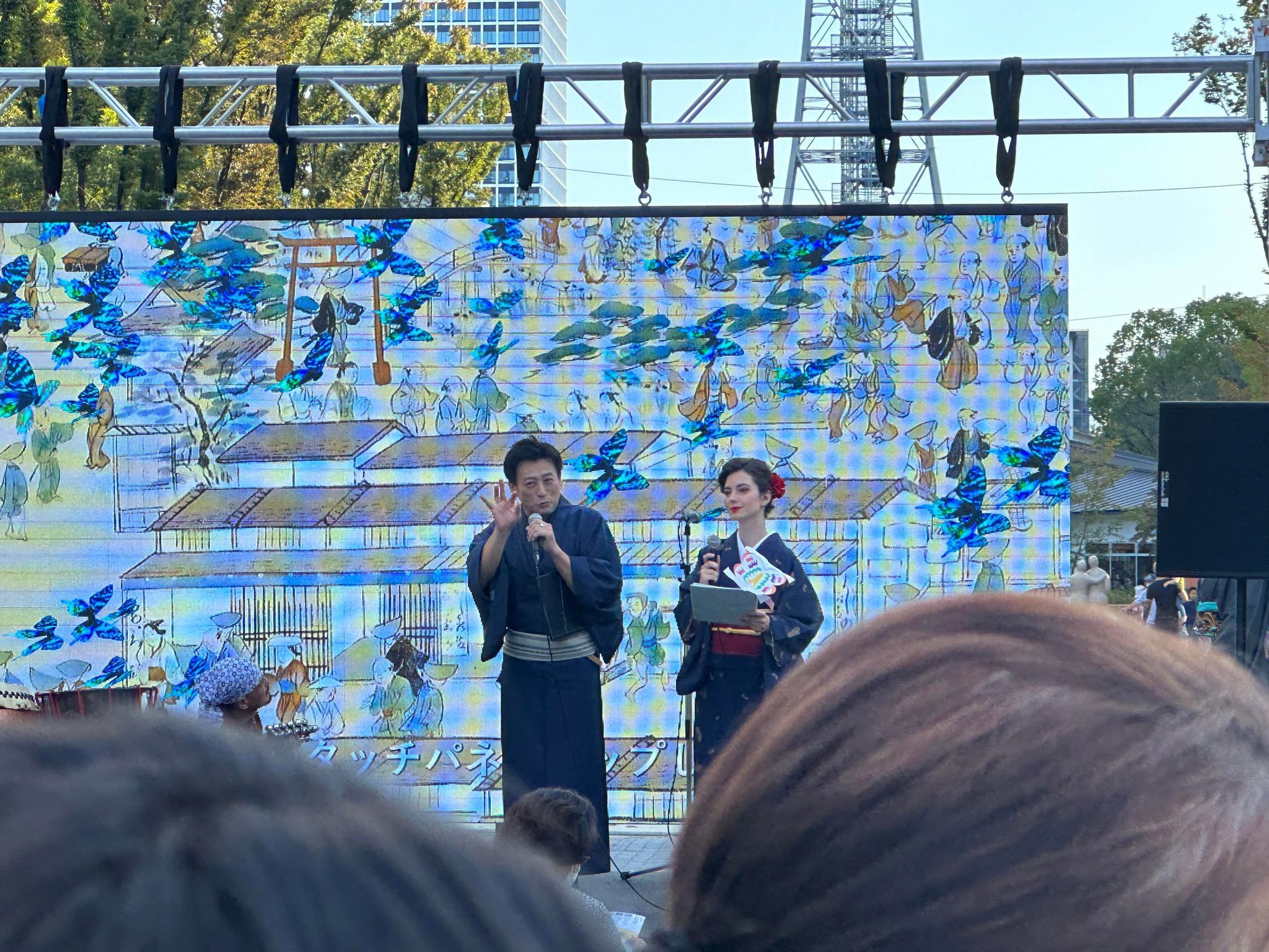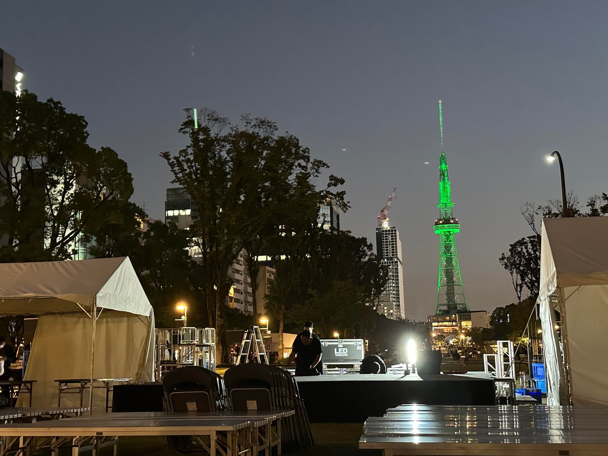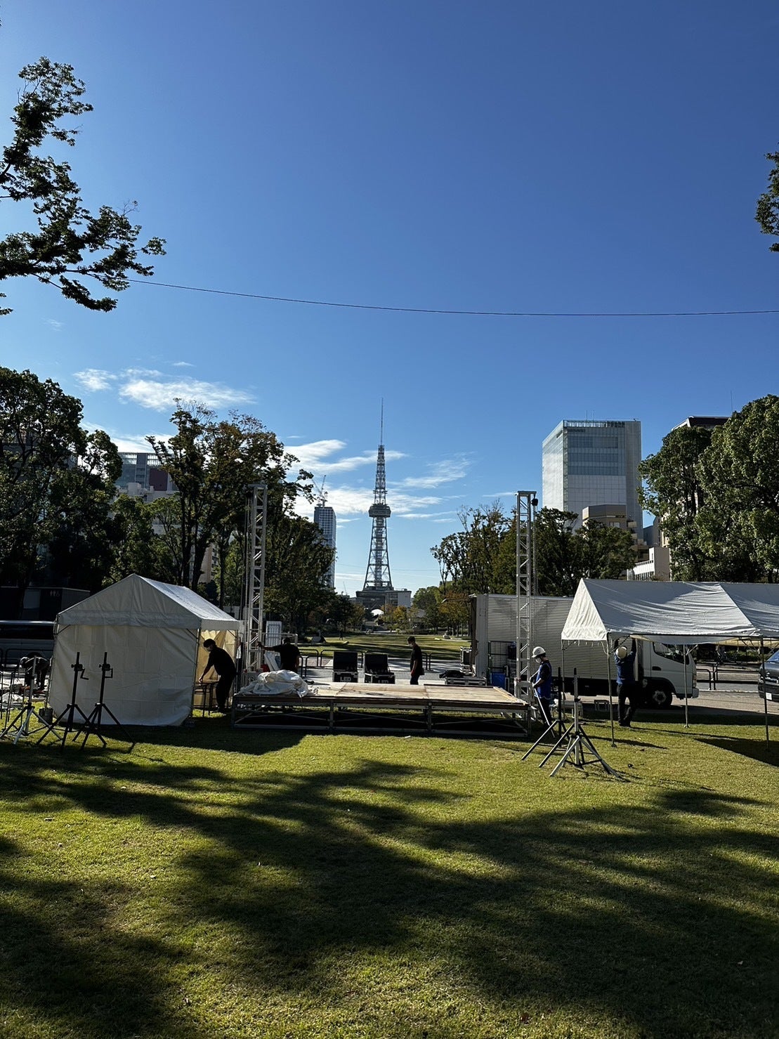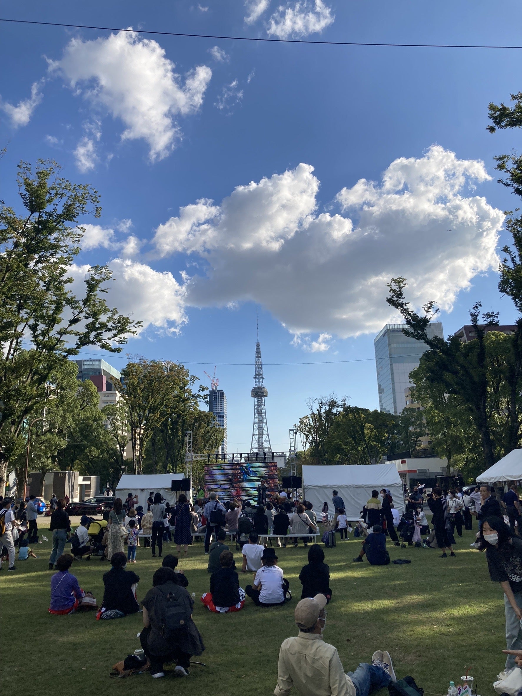ステージの借景は、スクリーンと名古屋テレビ塔がそびえる青い空!