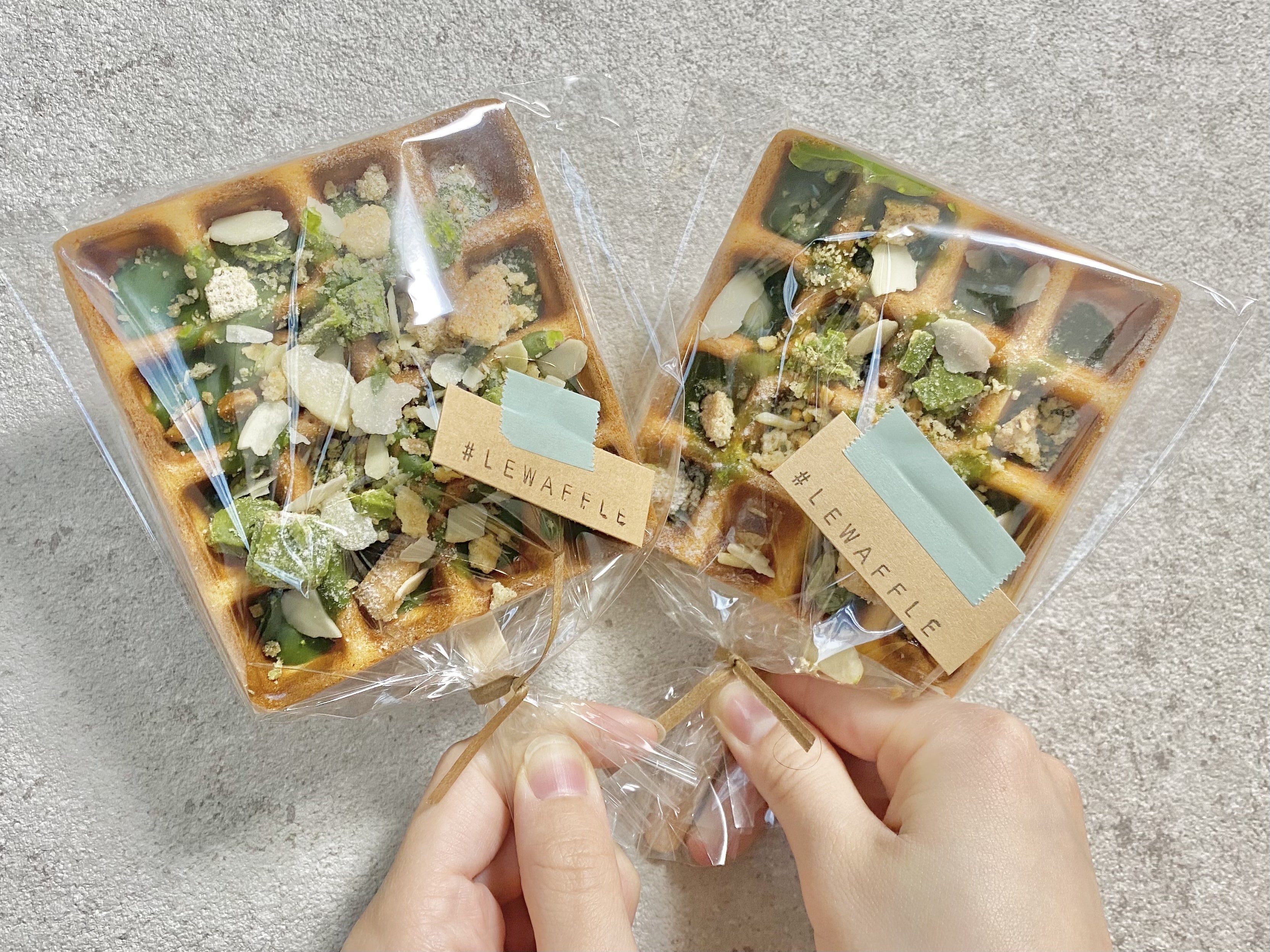 アーモンドスライス→チョコクッキー(抹茶ワッフル)、プレーンクッキー(チョコワッフル)