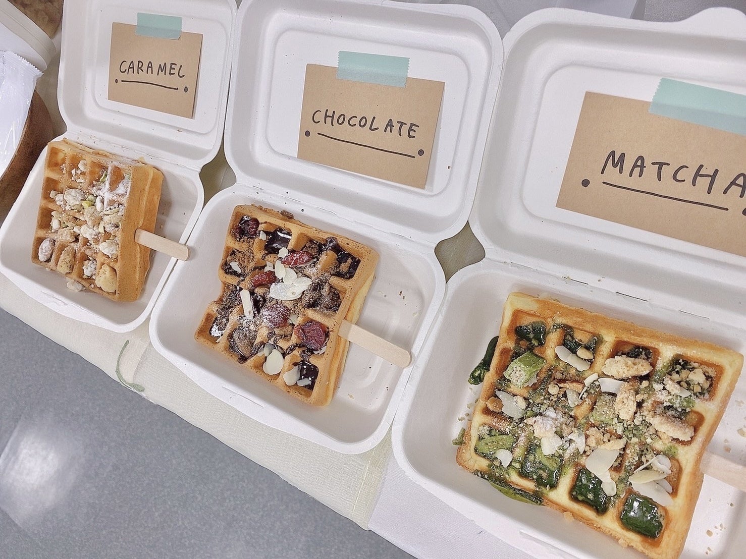 また、アレルギー対応もできるように、ナッツを使用しないワッフルも数量限定で用意をいたします。