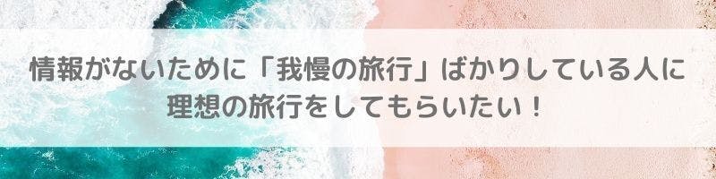 我慢せずに理想の形で旅をしてほしい!