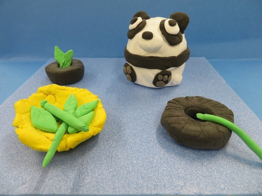 冒頭の作品の写真は、福島県立医科大学附属病院の中にある福島県立須賀川支援学校医大校のお子さんたちが作成したものです。「ダイオウイカ」と「タコ」は廃棄するプラスチックを再利用したSDGsをテーマにした作品です。虹のある作品は「光のさしこむ絵~南の島で~」というタイトルで、日めくりカレンダーにした作品です。「パンダ」は紙粘土で作られたもので、パンダハウスを利用したお子さんが、ハウスにプレゼントしてくれました。