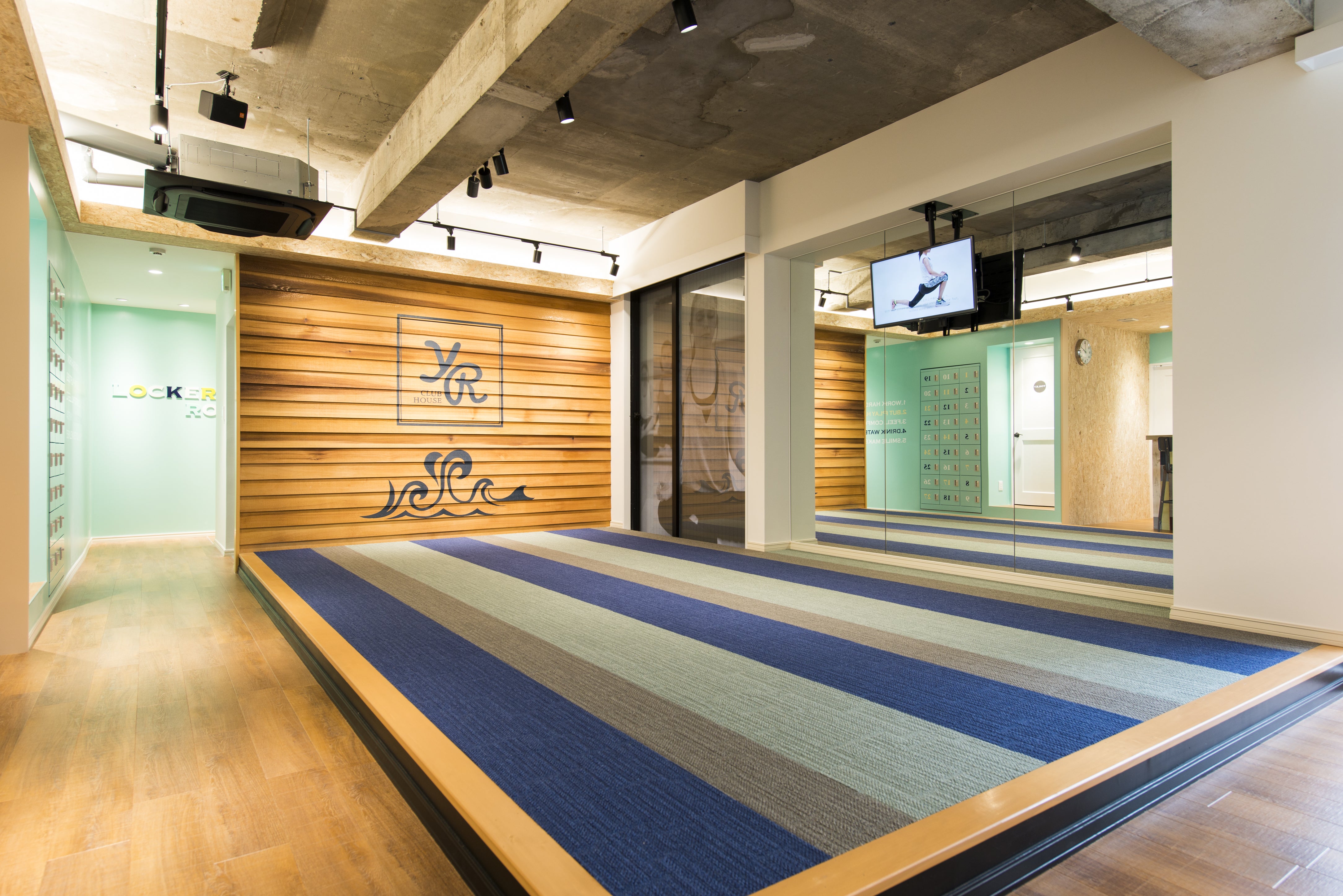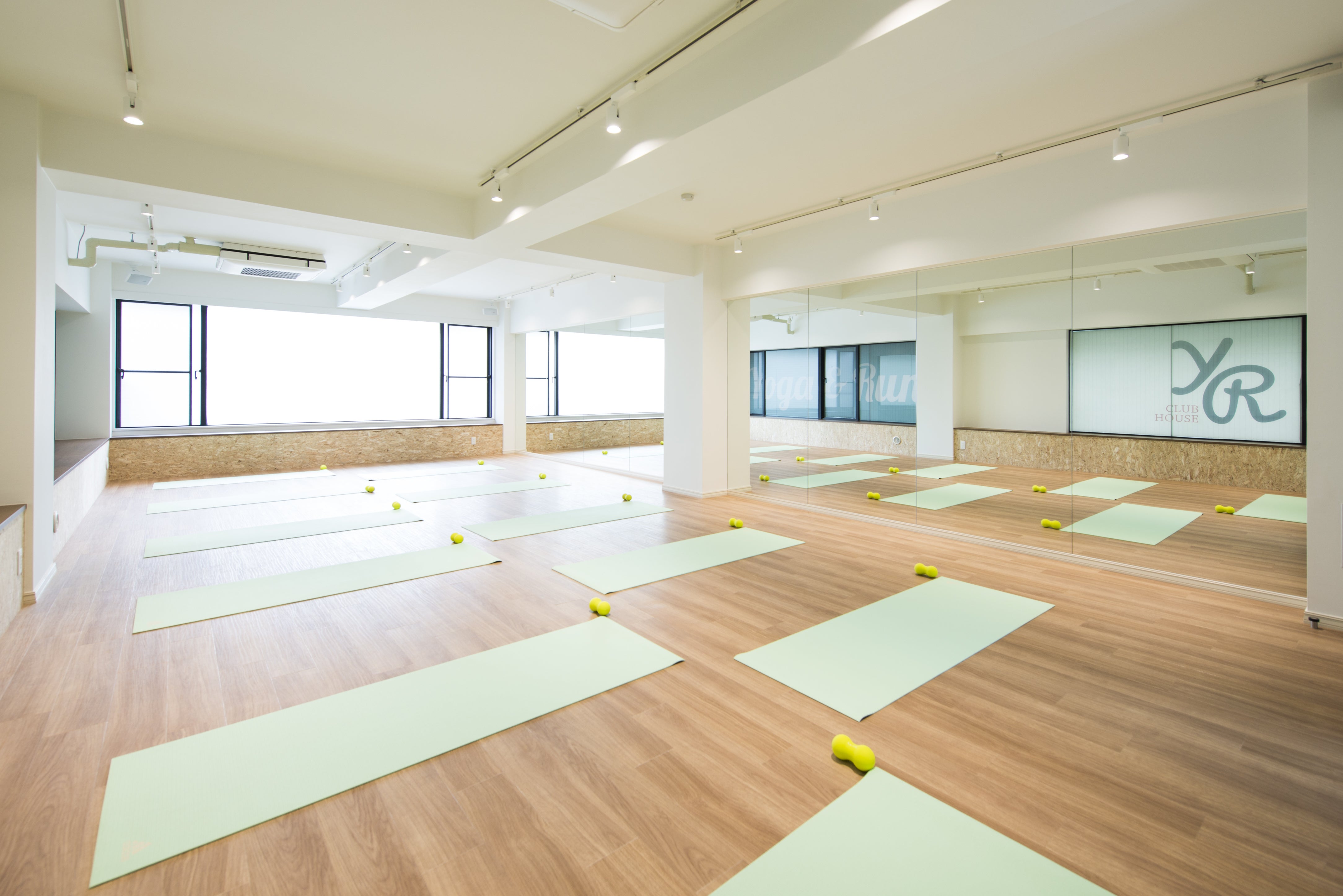 ブランド名である「YR」はヨガの頭文字(Y)とランニングの頭文字(R)を並べたものですが、その名のとおり店内ではヨガとランニングをグループレッスンで展開しています。