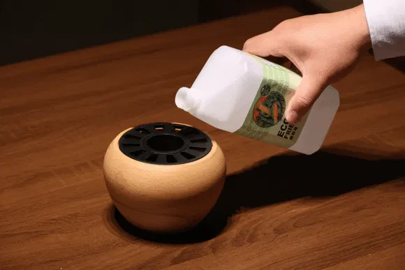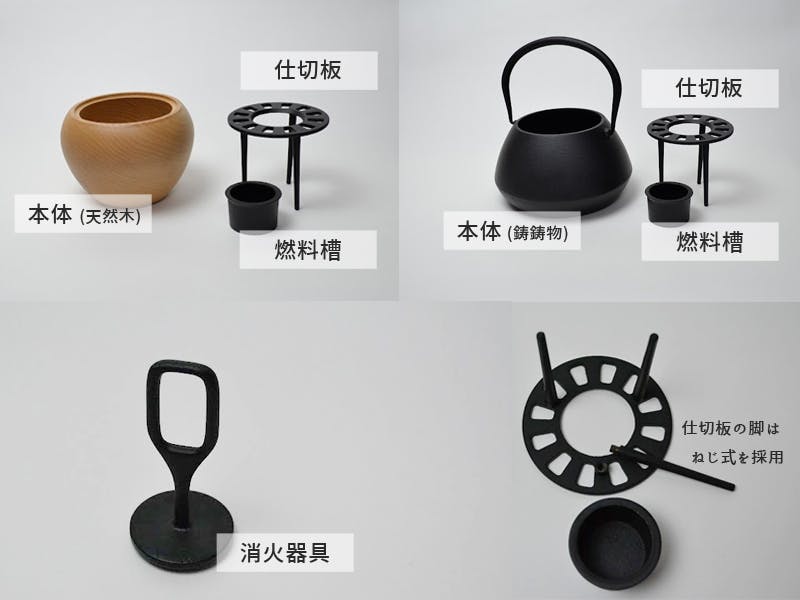 【TOMOSHIBI】は、燃料槽と本体からなるシンプルな構造のため、消火も1ステップと非常に簡単です。また分離構造をとるために本体が熱くなりにくく、さらに燃料は燃焼時間を管理しやすく消し忘れの心配もありません。