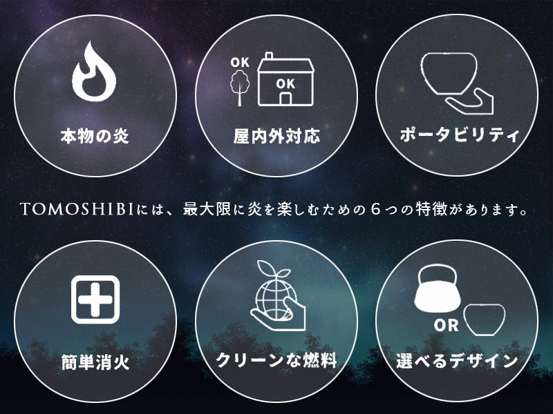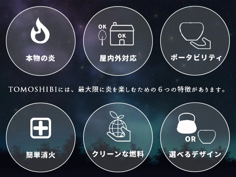 物語を紡ぐデザインの意味が、【TOMOSHIBI】に炎を灯して過ごす上質な時間をさらにかけがえのない時へと昇華させます。