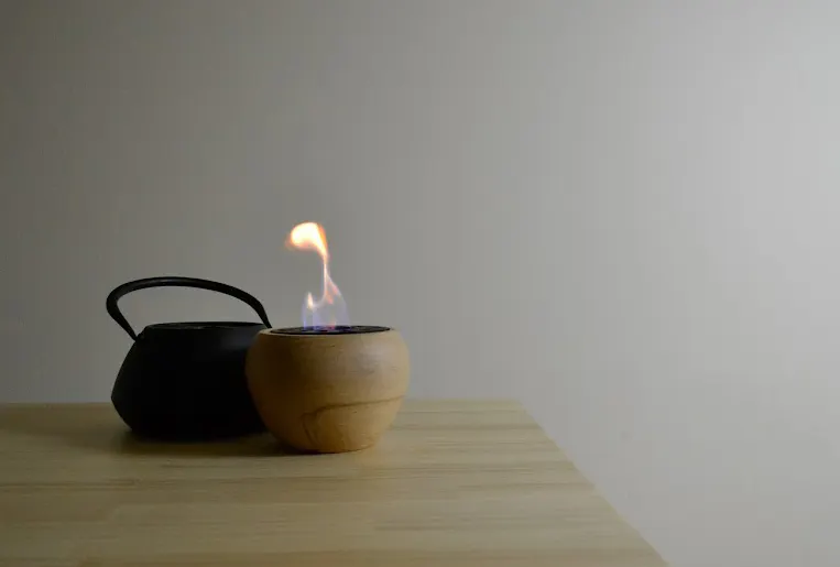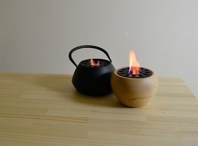 【TOMOSHIBI】はバイオエタノールなどを燃料とする「本物の炎」を扱うテーブル型暖炉です。