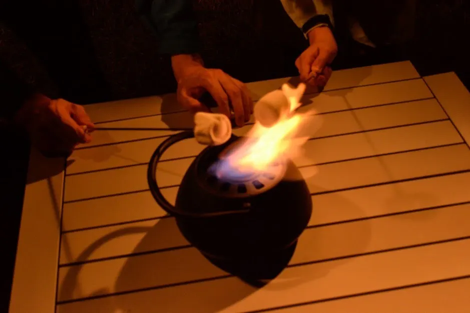 燃料槽にこぼれないようにバイオエタノール燃料を入れ、多目的ライターや着火棒などの道具を使って着火してください。火がついている間は離れないようにご注意ください。また、燃料槽にスチールウールを入れることで燃焼時間が少し長くなる効果もあります。