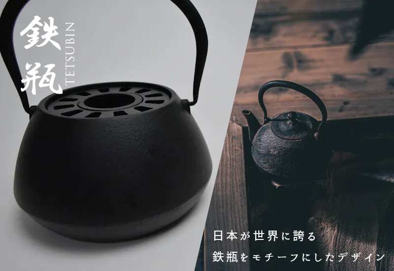 約400年の歴史を持つ日本の伝統工芸「鉄瓶」は、日本のみならず、欧米や中国などの海外市場でも人気の高いプロダクトです。かつては家庭の囲炉裏に焚べていた、炎を象徴するプロダクトを、鉄鋳物の無骨で重厚なイメージを再現した上でモチーフとしたデザインです。