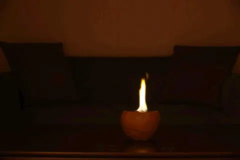 【TOMOSHIBI】はバイオエタノールもしくは固形燃料を燃料として炎を灯します。それらは一酸化炭素などの有害な物質は発生させず、二酸化炭素と水だけを生み出すカーボンニュートラルと言われる再利用性を持つとされる近年注目されるクリーンな燃料であり、比較的経済的な燃料です。