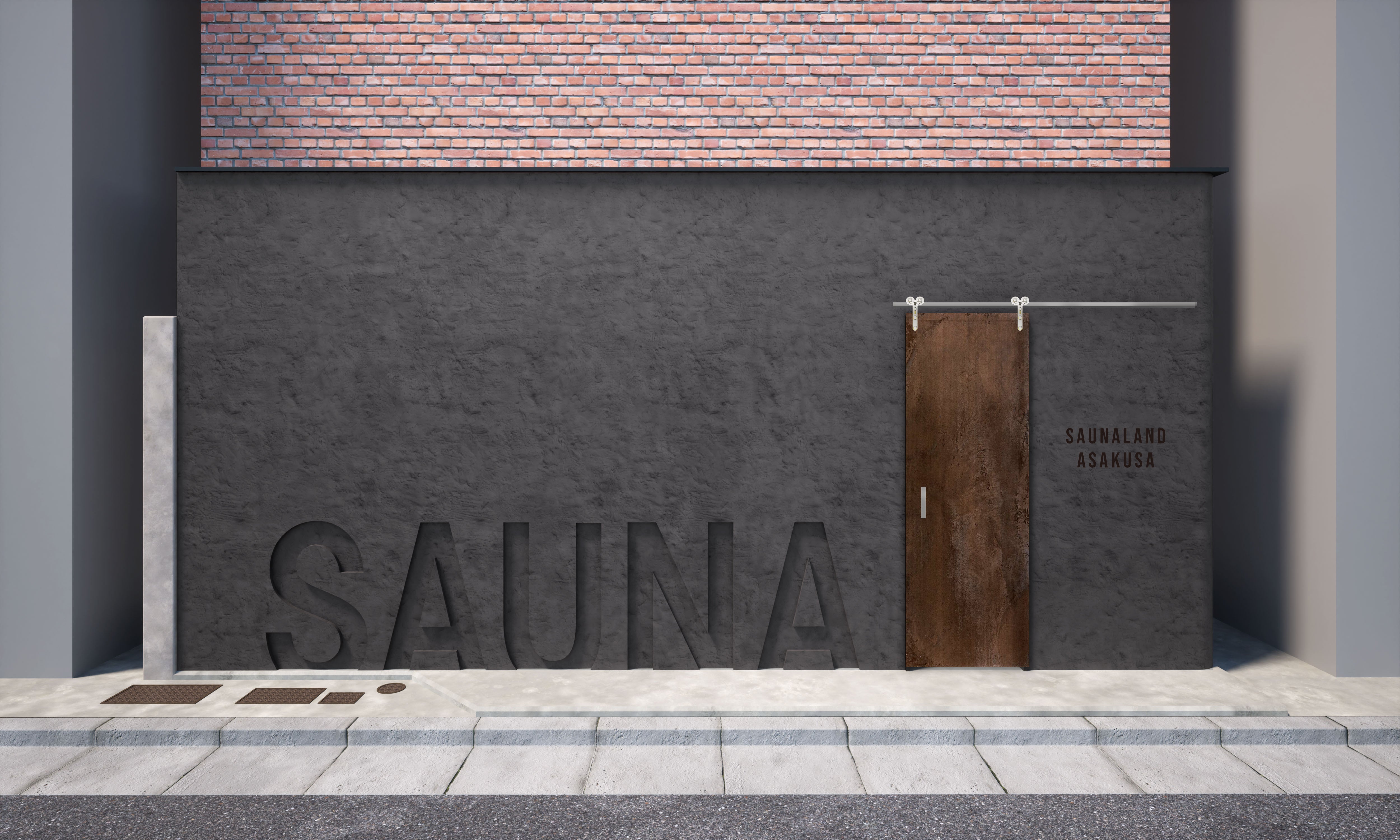 浅草の一等地に現れる「SAUNA」の文字が刻まれた建物。これがSAUNALAND ASAKUSAの外観イメージです。スタイリッシュで大人の秘密基地感のあるファサードに吸い込まれます。