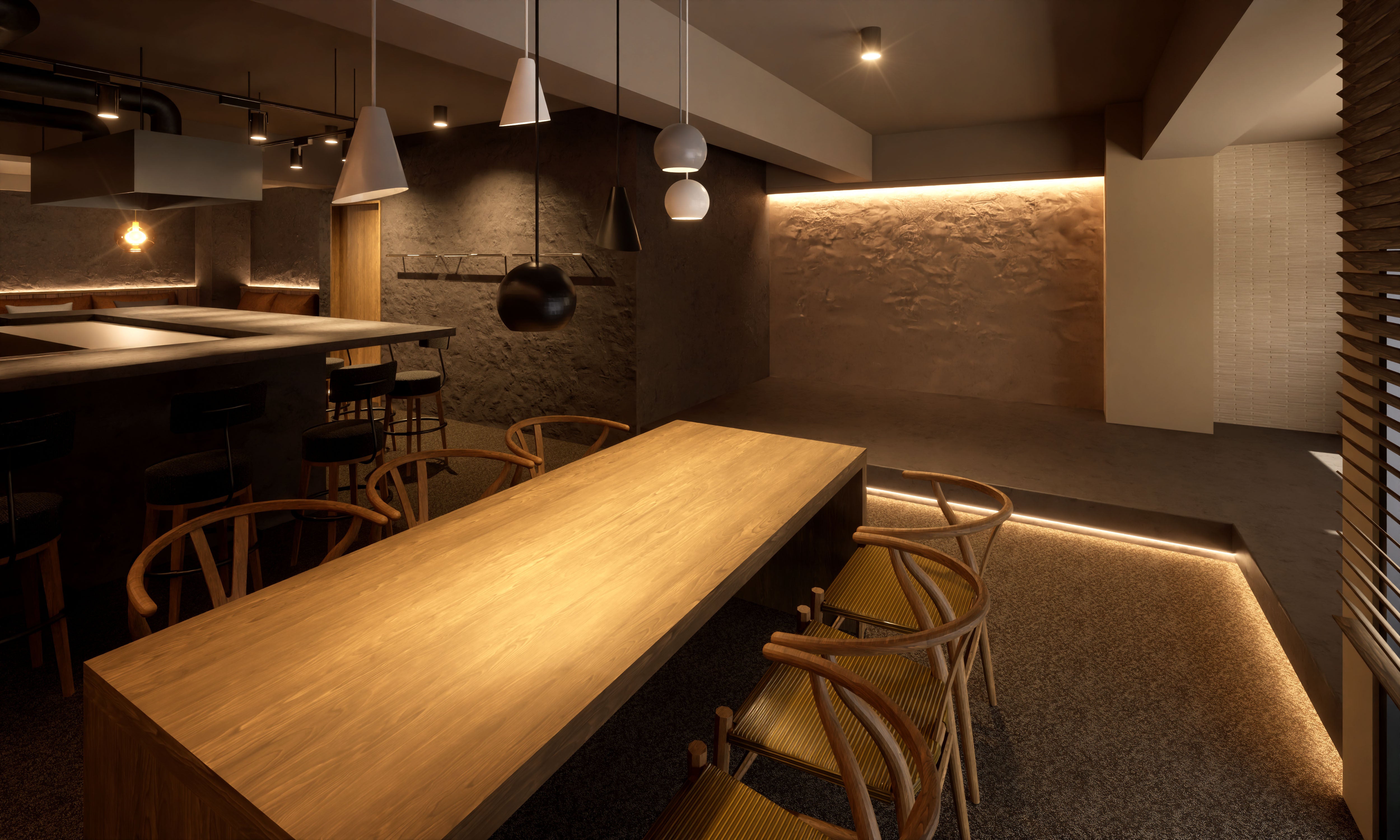 1Fの貸切サウナを楽しんだあとは、ぜひこのキッチンダイニングラウンジもご利用いただきたいです! ラグジュアリーな居心地の良さを追求した貸切空間で、キッチンダイニングの中央にはビルドインの鉄板を用意。この鉄板をみんなで囲って、お酒を飲みながら浅草名物もんじゃ焼きをつつきながら、好きなだけ語らう時間は、他のサウナでは味わえない最高の時間になること間違いなしです。
