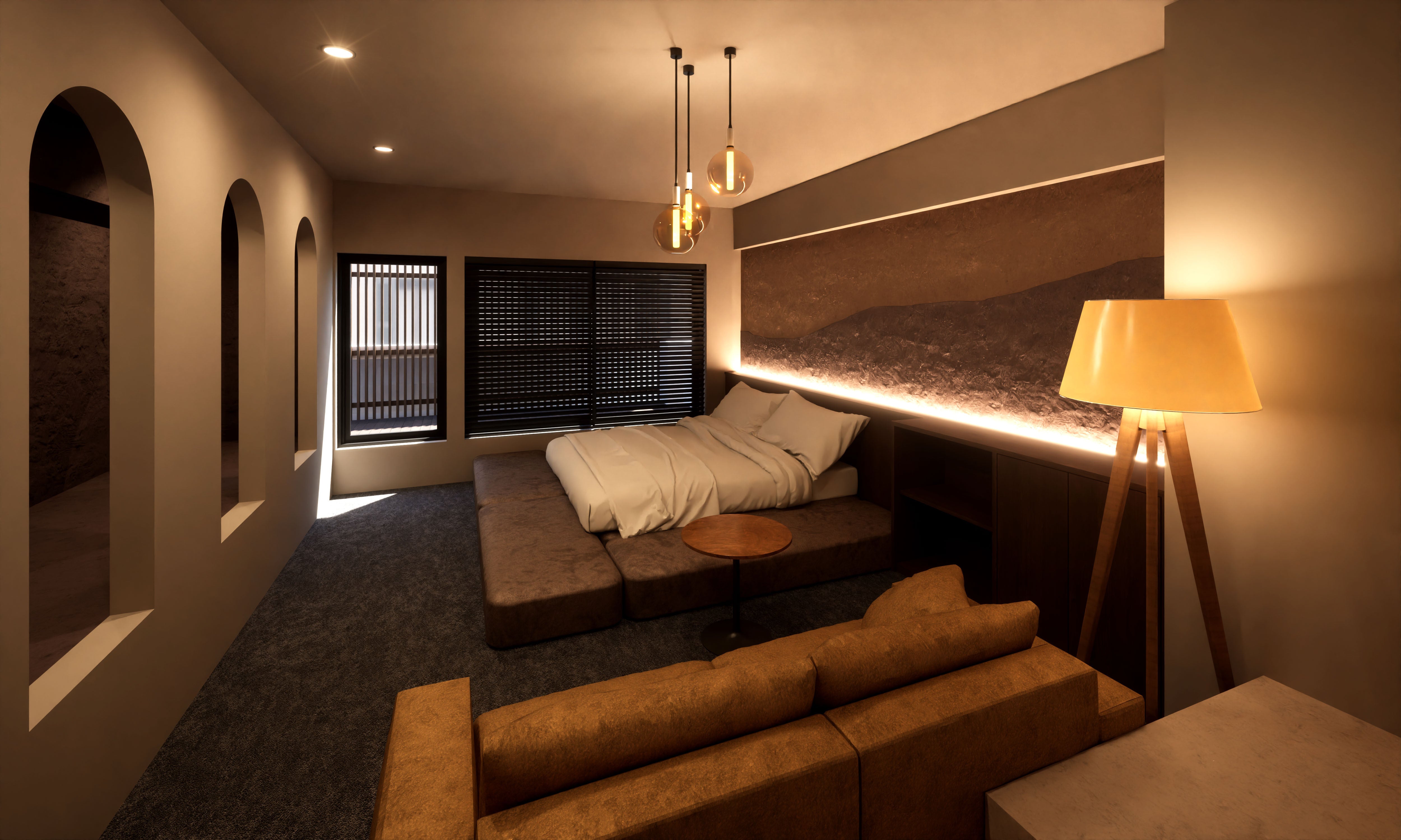 3Fと4Fは1組ずつ宿泊できるホテル。仲間や恋人とサウナ付きのプライベート空間で特別な時間を過ごせます。3Fは最大6名、4Fは2名のペアで。一緒に過ごす人と目的に合わせて、お好きな部屋をチョイスして楽しんでいただけます!宿泊だけでなく、日帰り利用も可能。