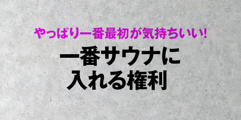 誰よりも先にサウナランド浅草のサウナに入れる権利です。一番風呂ならぬ一番サウナ。オープン前の特権です。一番サウナとは別日で1Fサウナの貸切利用権付きです。