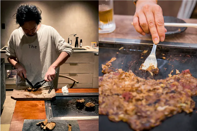 仲間と囲うテーブルには、ビルドインの鉄板を。