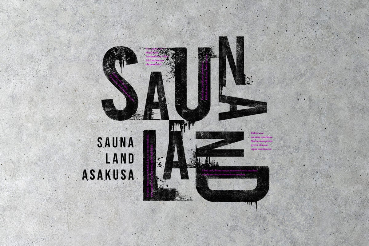 SAUNALAND ASAKUSAのメインビジュアルをあしらったエントランスの壁面