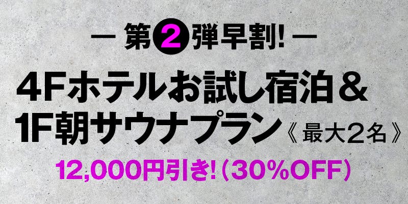 SOLDOUTだった、4Fホテルの利用プランも復活です! 割引率が少しずつ落ちていくので、ご支援はお早めがお勧めです!